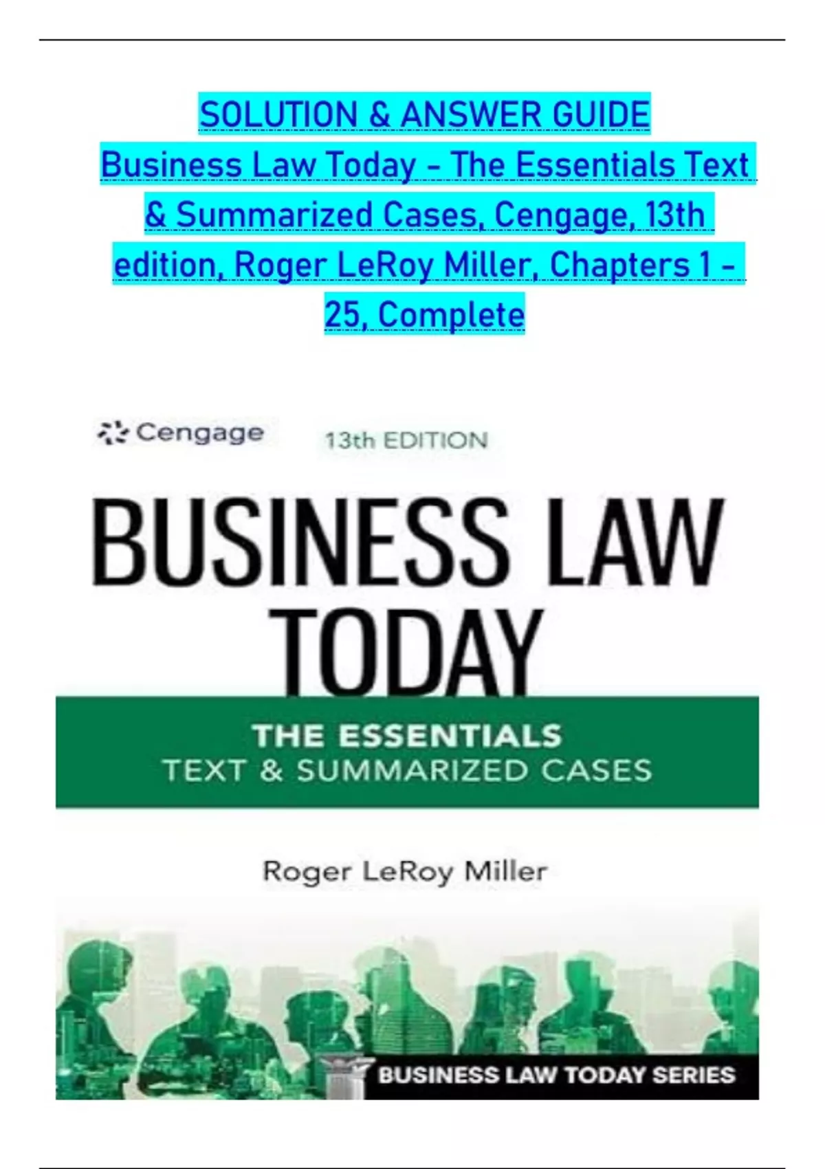 SOLUTION and ANSWER GUIDE for Business Law Today - The Essentials Text & Summarized 13th edition, by Roger LeRoy Miller, all Chapters 1- 25|newest edition 2024|2025