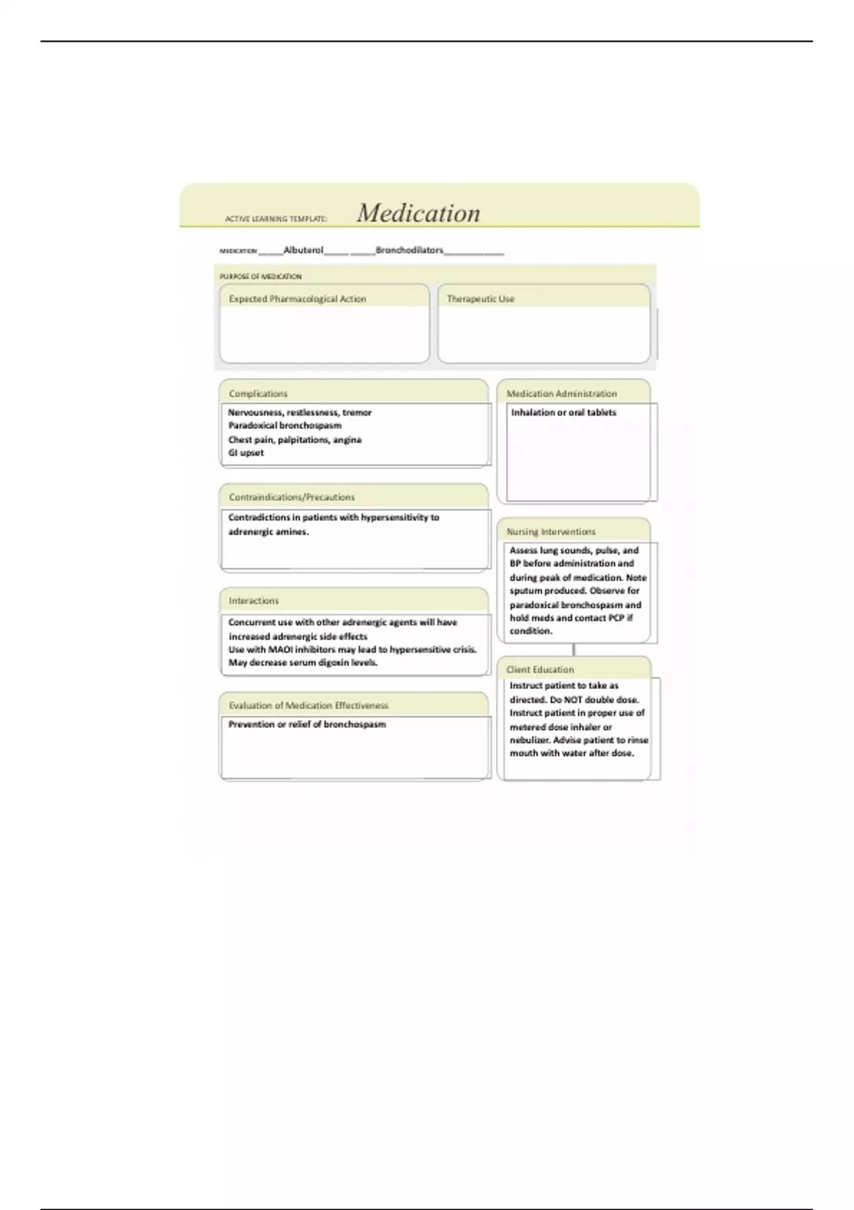 This is a comprehensive and detailed ATI Medication Template on;Albuterol.