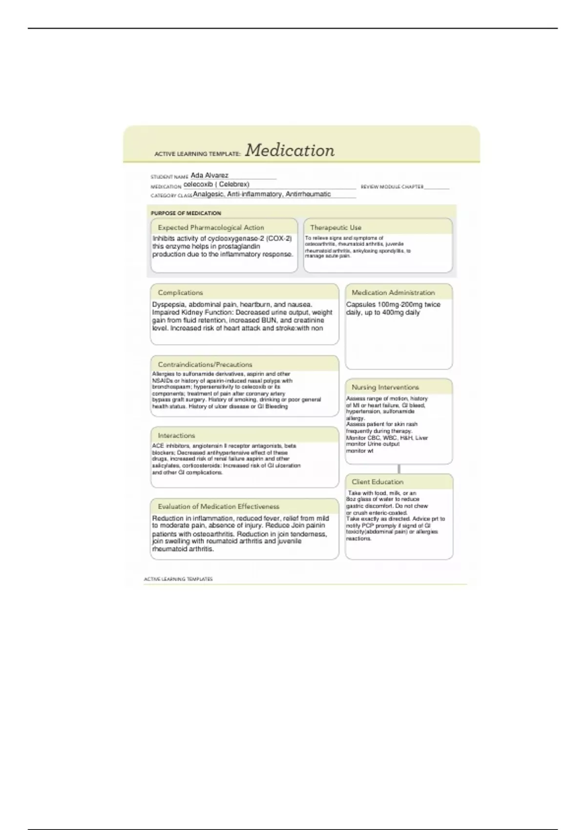 NUR 1015 ATI Medication:Celecoxib Template