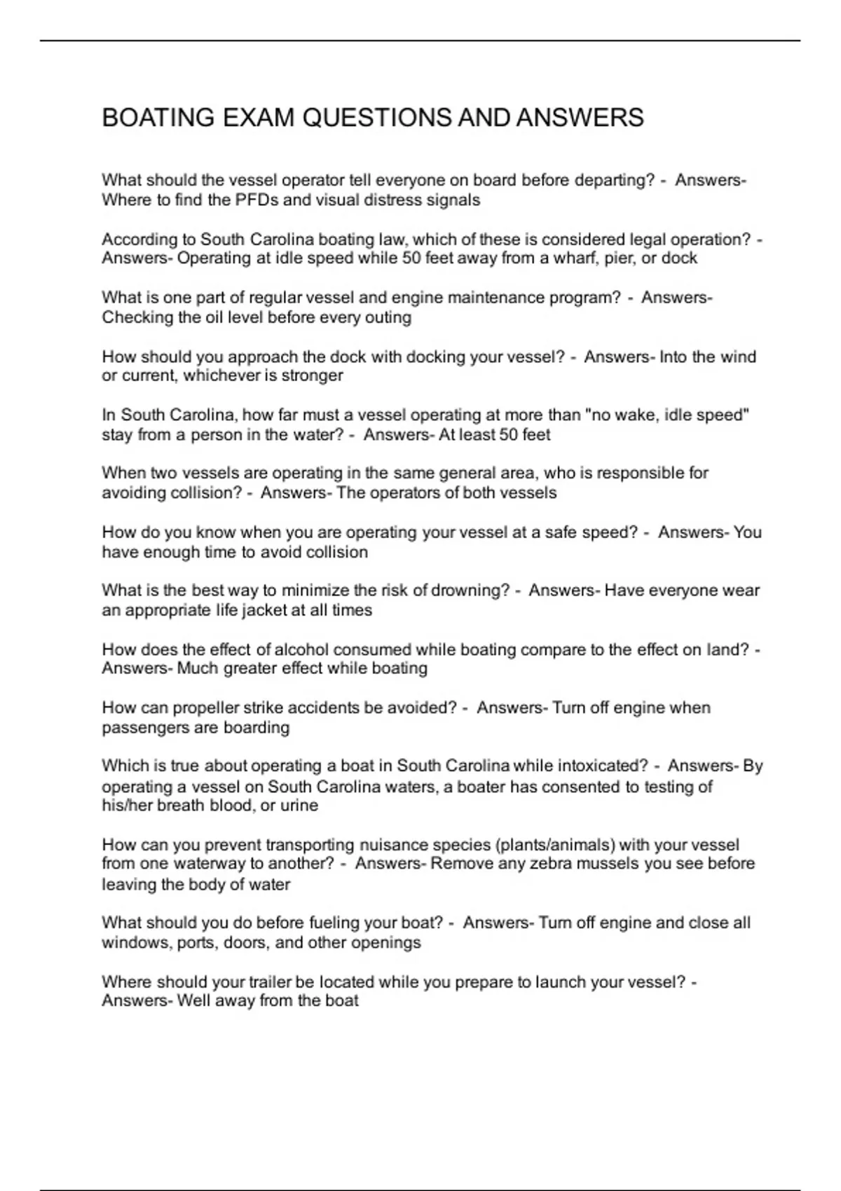 BOATING EXAM QUESTIONS AND ANSWERS