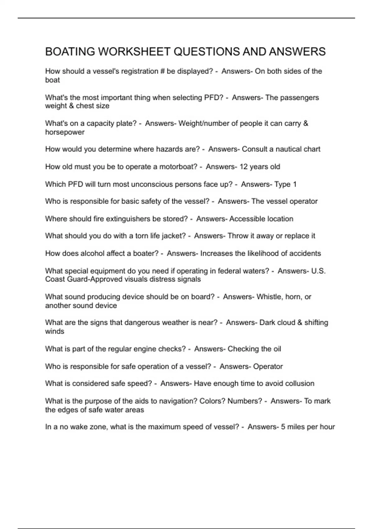 BOATING WORKSHEET QUESTIONS AND ANSWERS