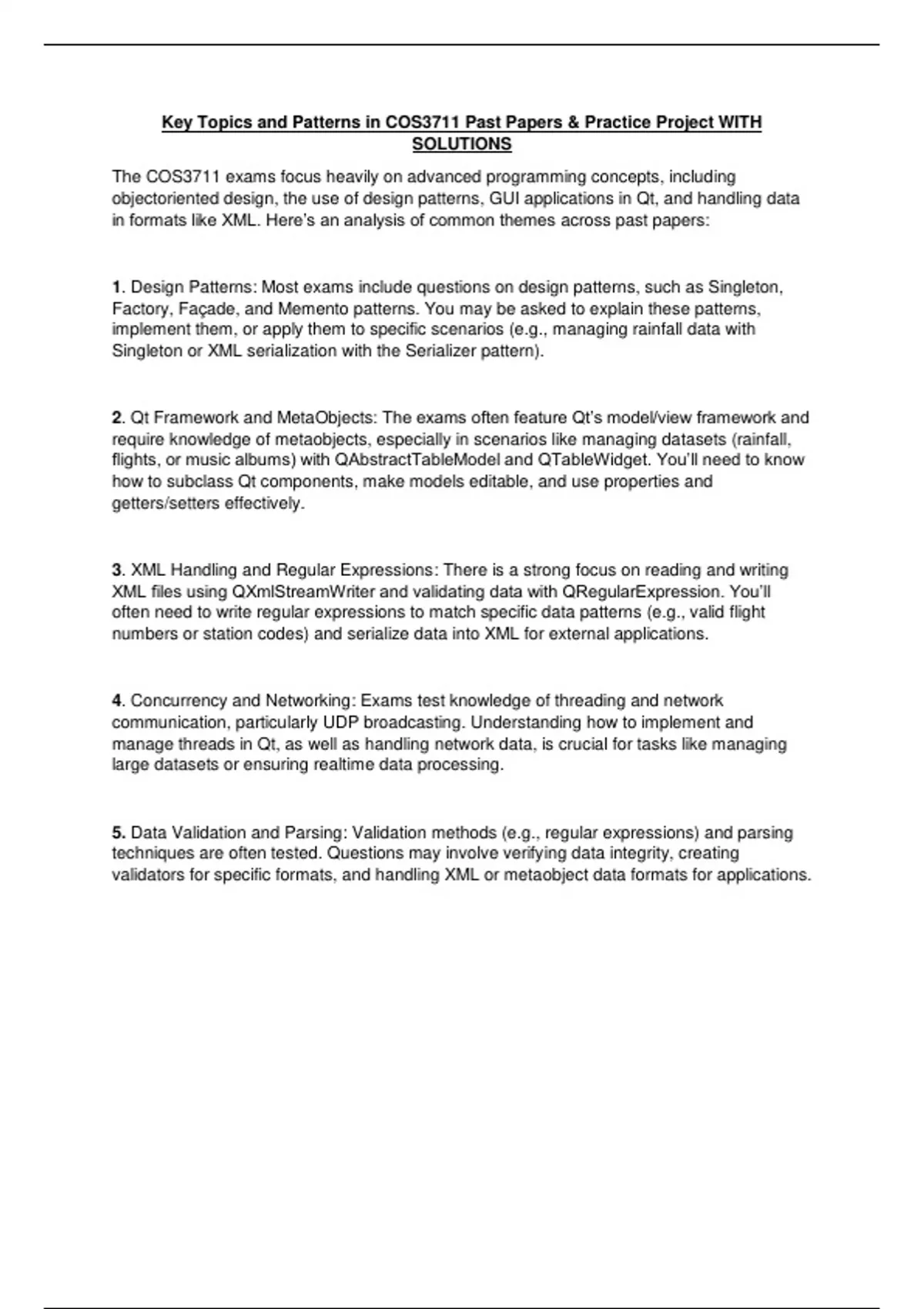 Key Topics and Patterns in COS3711 Past Papers & Practice Project WITH