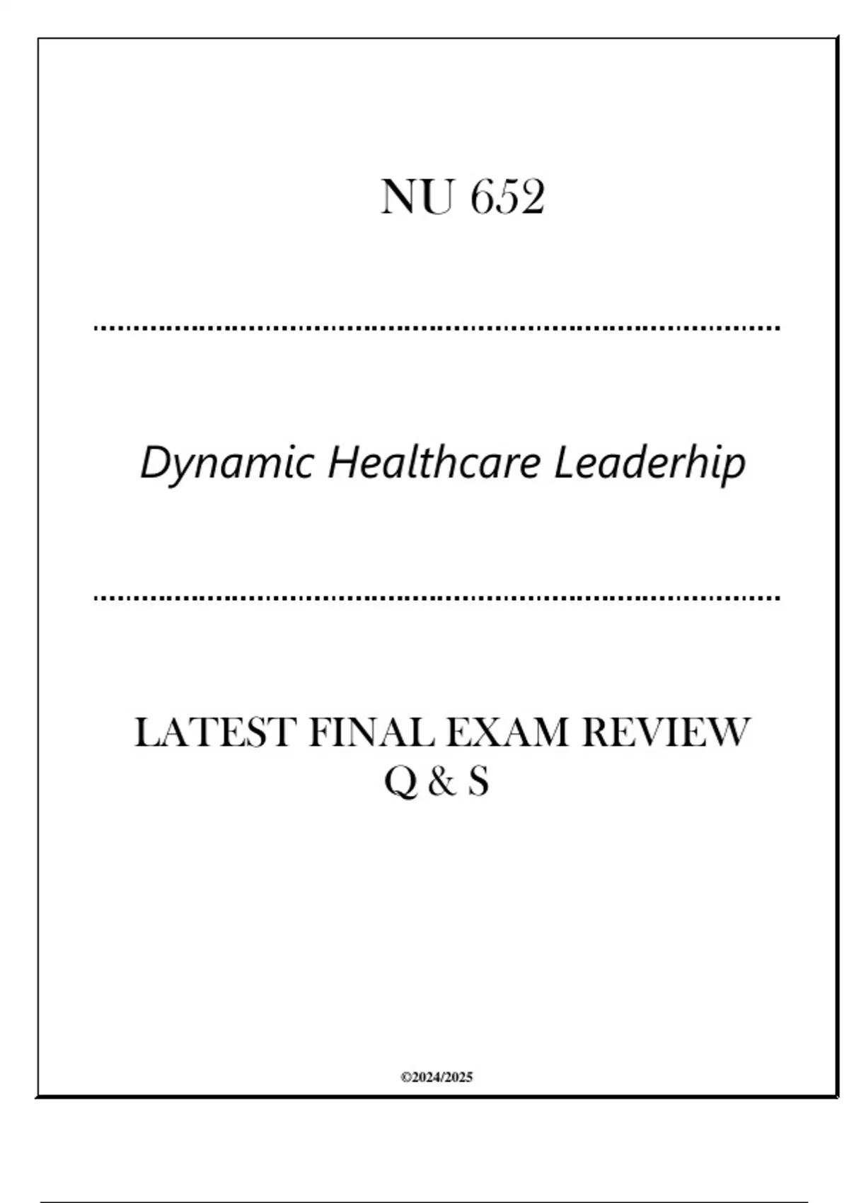 (HU) NU 652 Dynamic Healthcare Leaderhip - Latest Final Exam Review Q & S 2024(HU) NU 652 Dynamic Healthcare Leaderhip - Latest Final Exam Review Q & S 2024(HU) NU 652 Dynamic Healthcare Leaderhip - Latest Final Exam Review Q & S 2024