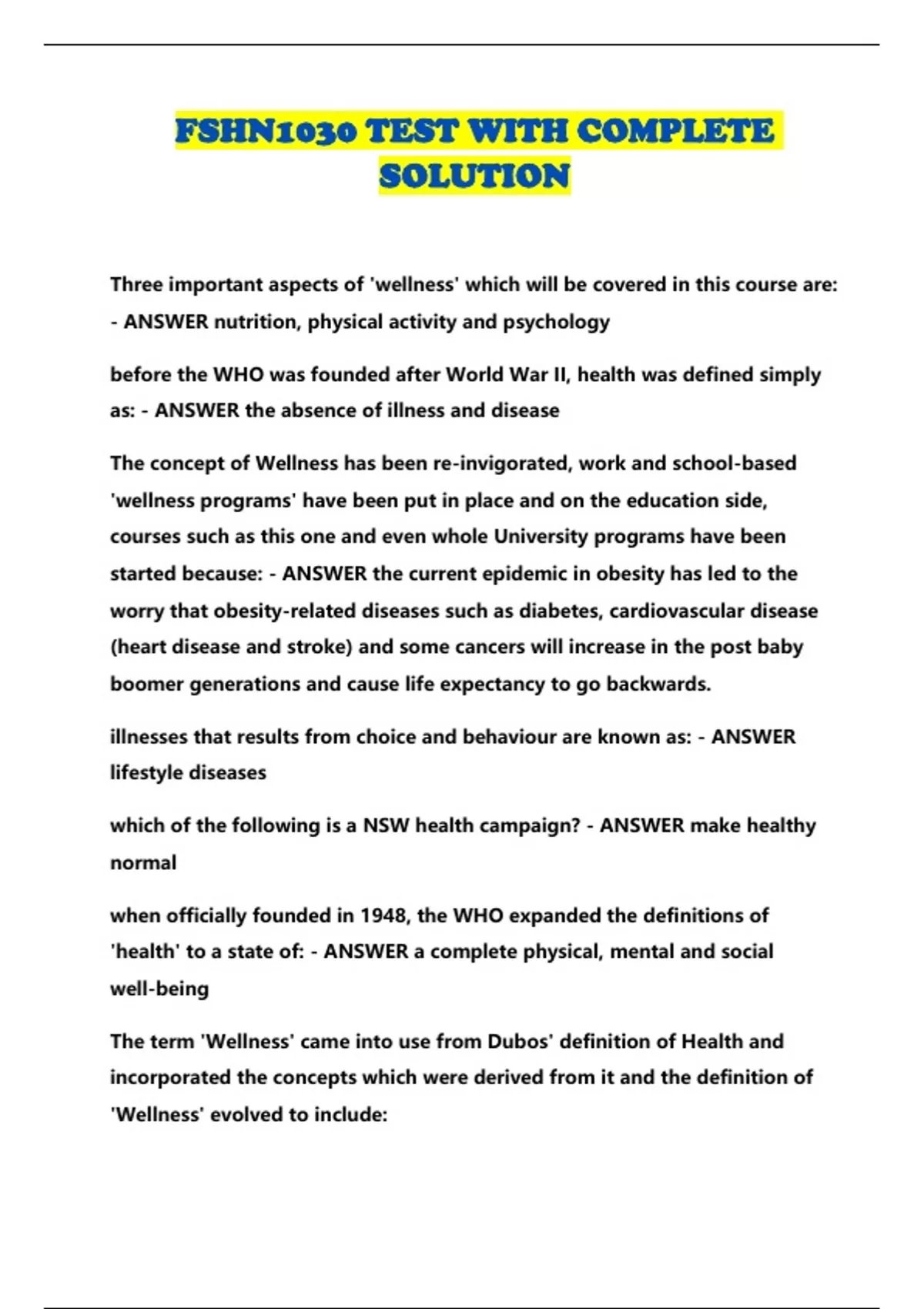 FSHN1030 TEST WITH COMPLETE SOLUTION...