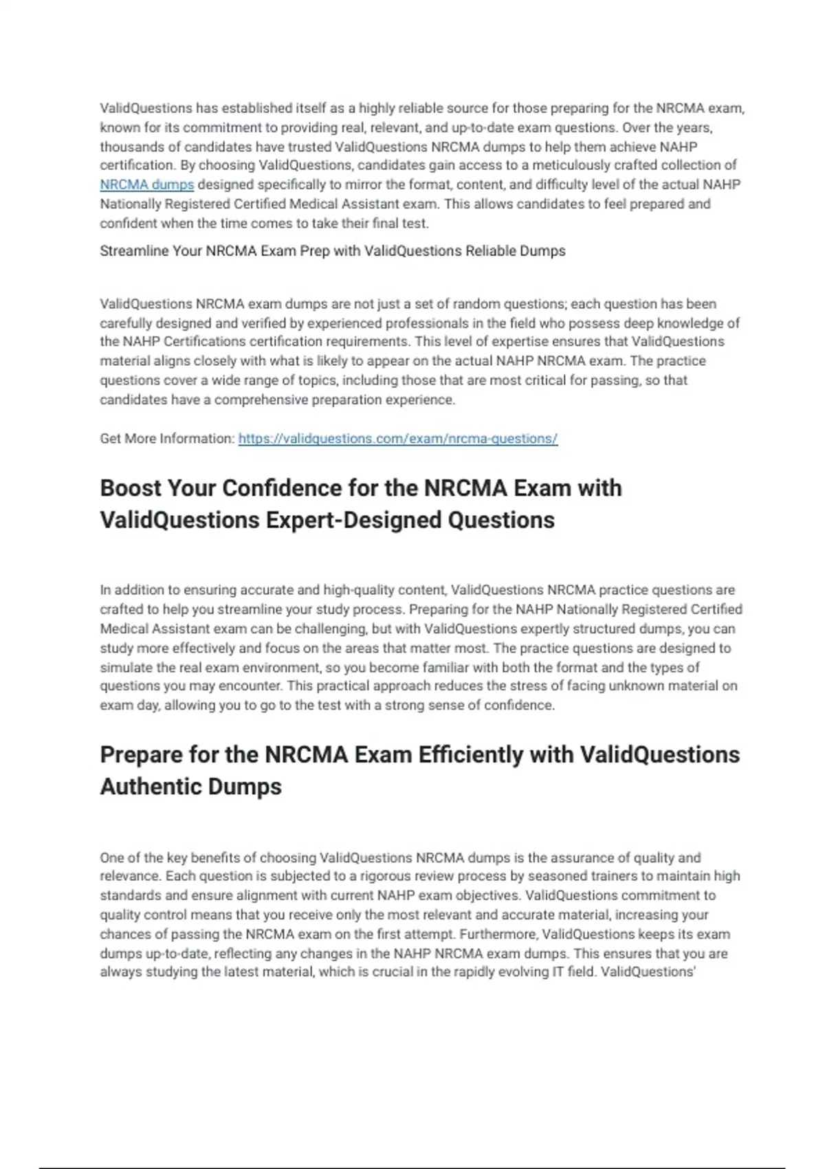 Streamline Your NRCMA Exam Prep with ValidQuestions Reliable Dumps