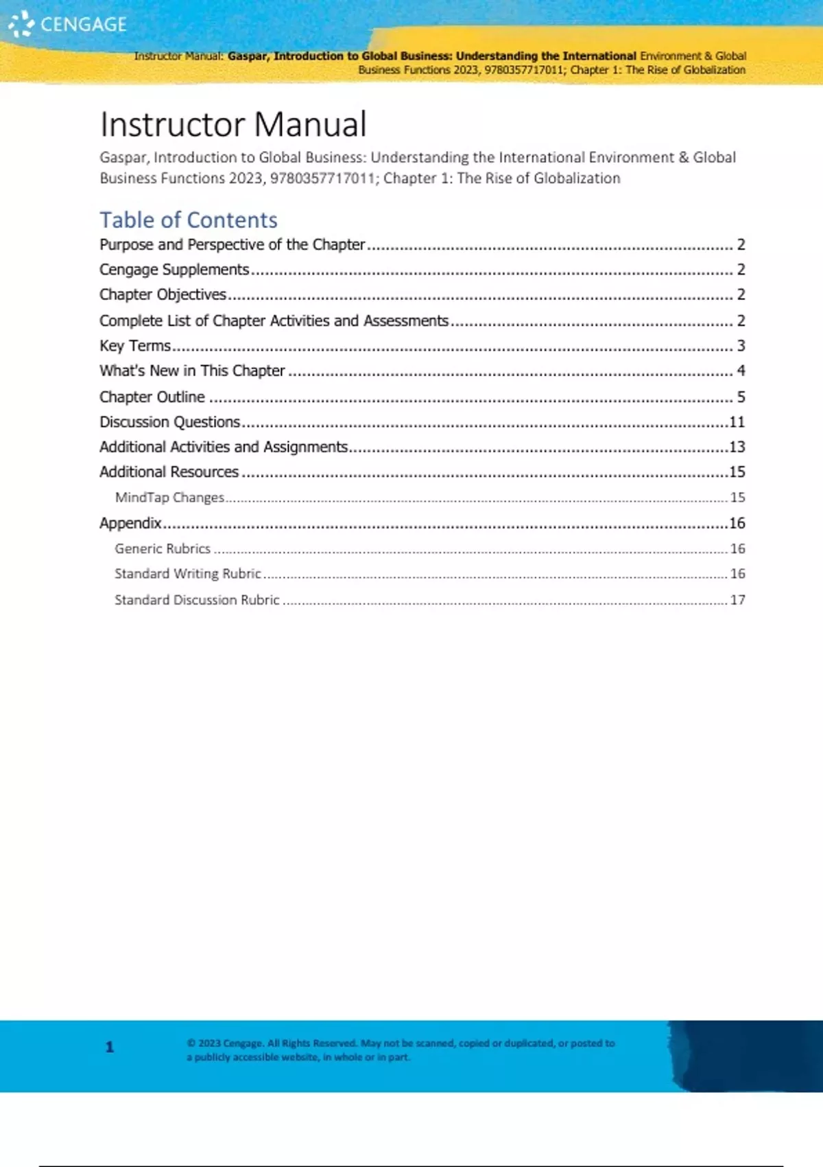 , Instructor Manual: Gaspar, Introduction to Global Business: Understanding the International Environment & Global
