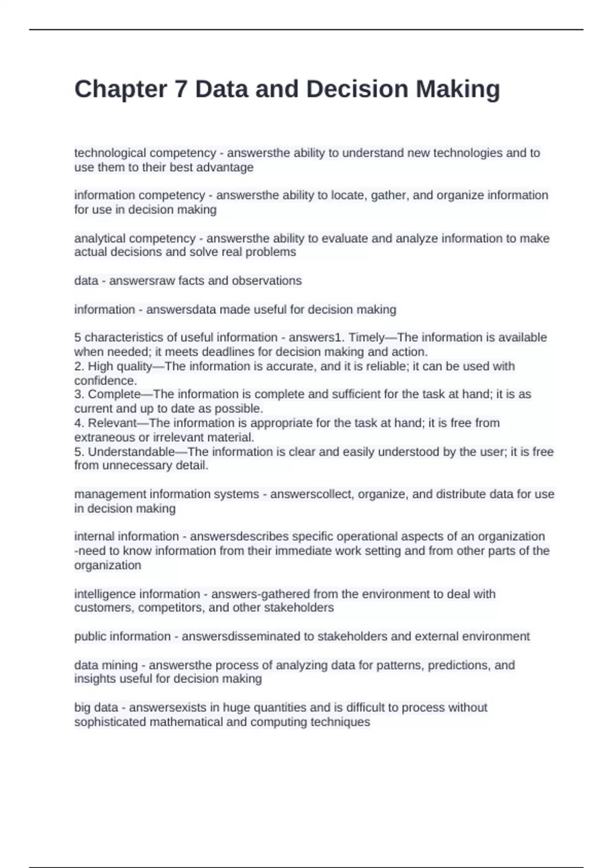 Chapter 7 Data and Decision Making questions with appropriate answers