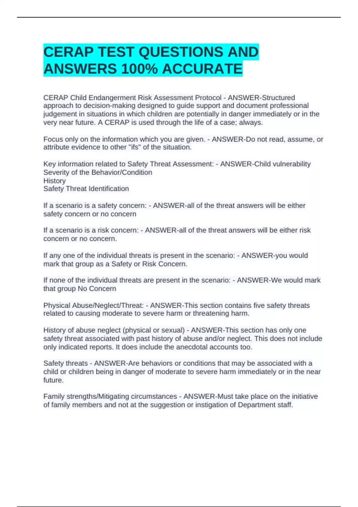 CERAP Child Endangerment Risk Assessment Protocol - ANSWER-Structured