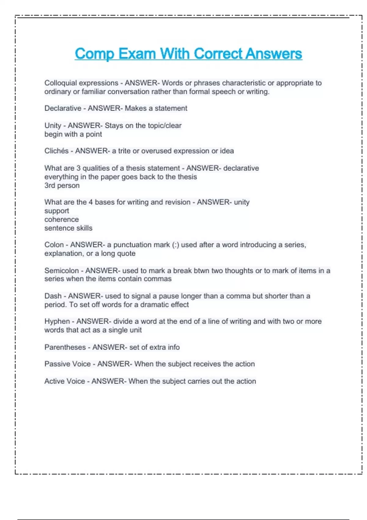 What are 3 qualities of a thesis statement - ANSWER- declarative