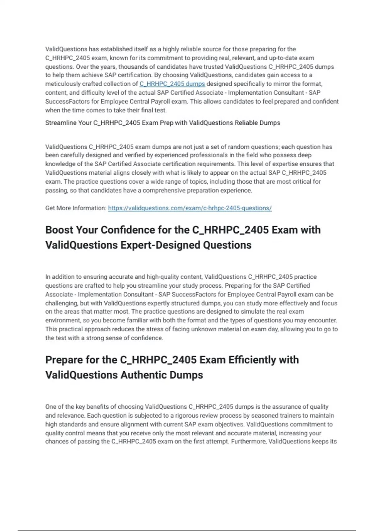 One of the key benefits of choosing ValidQuestions C_HRHPC_2405 dumps is the assurance of quality