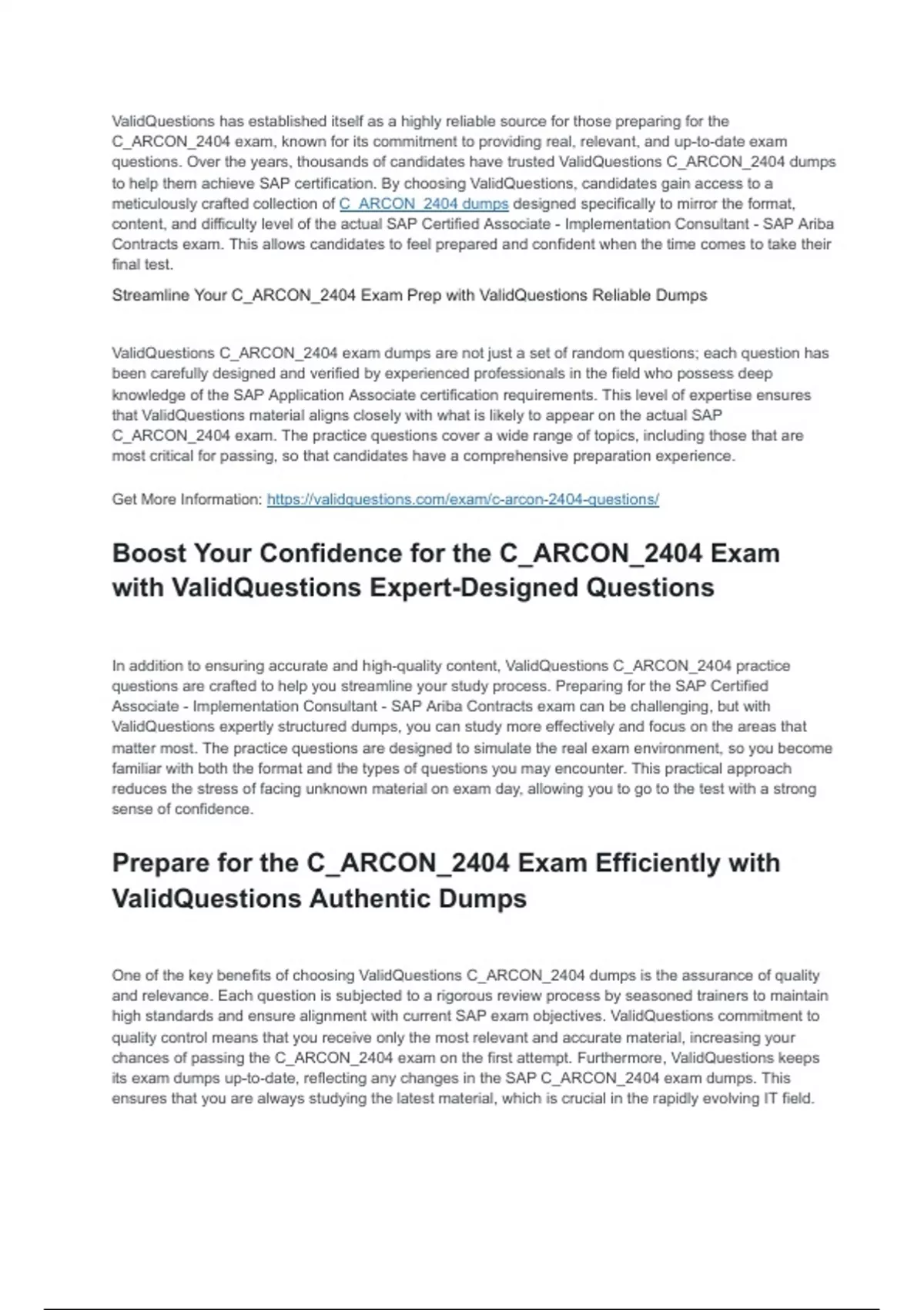 questions. Over the years, thousands of candidates have trusted ValidQuestions C_ARCON_2404 dumps