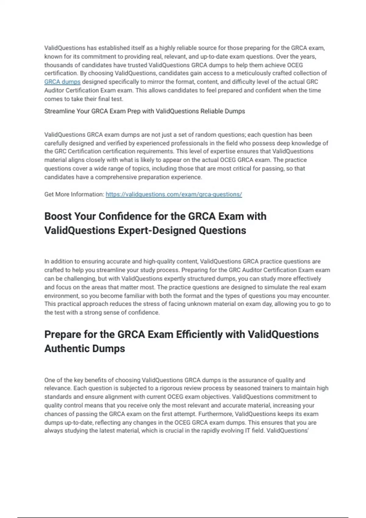 ValidQuestions GRCA exam dumps are not just a set of random questions; each question has been