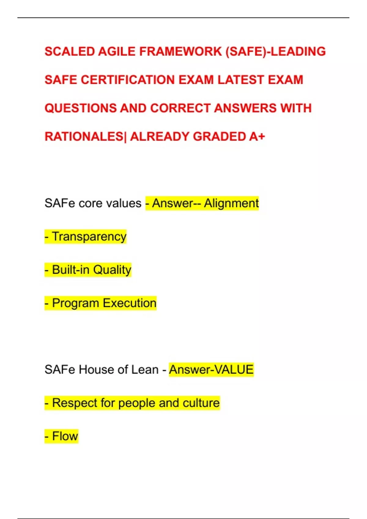 SAFe House of Lean - Answer-VALUE