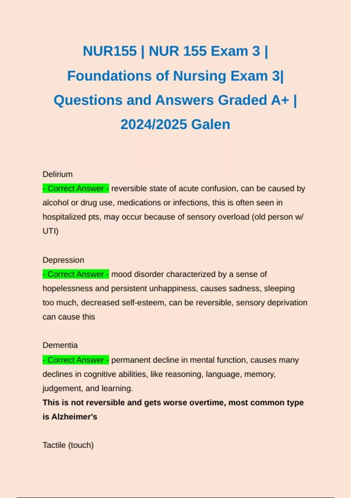 - Correct Answer - reversible state of acute confusion, can be caused by