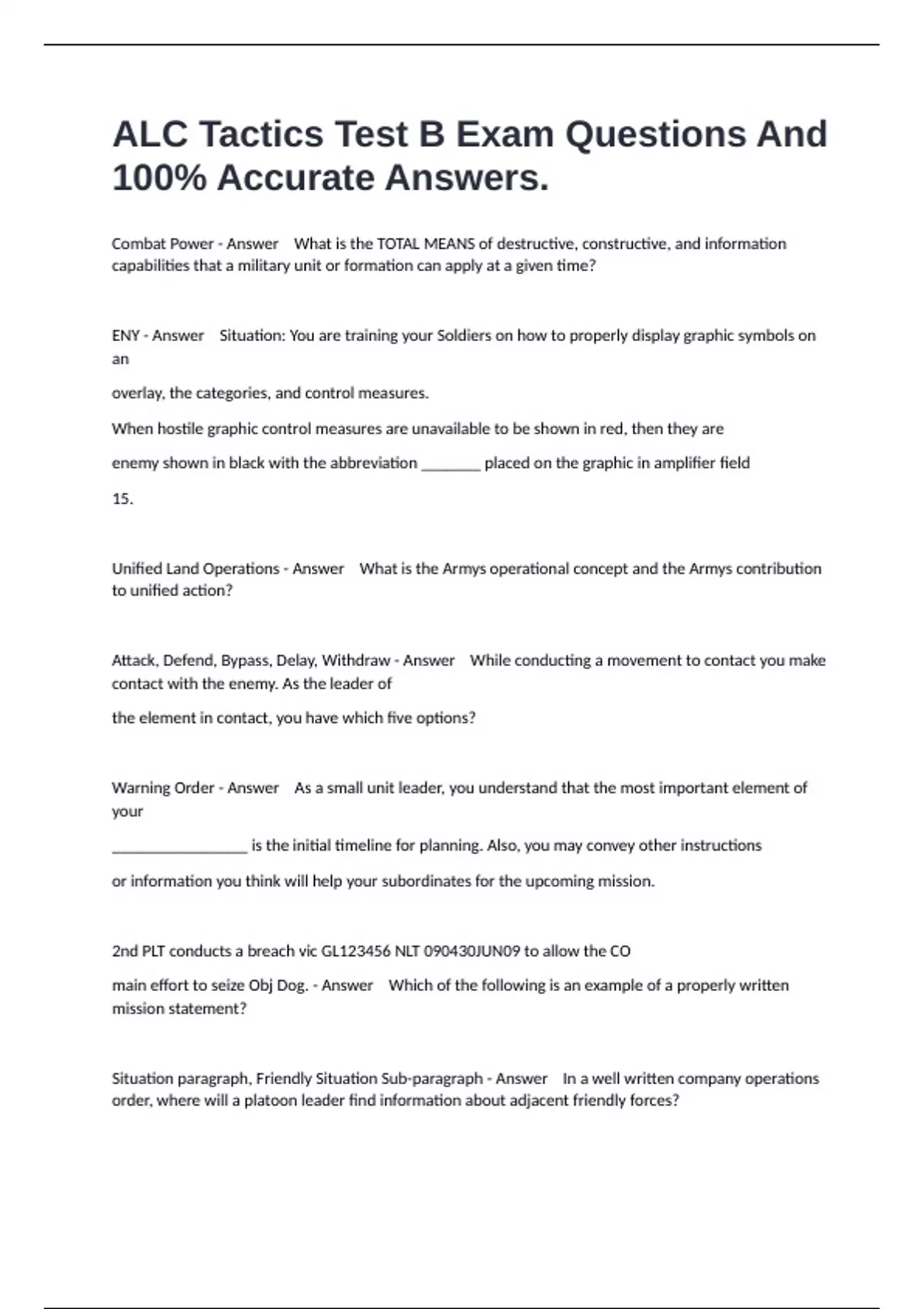 ALC Tactics Test B Exam Questions And 100% Accurate Answers.