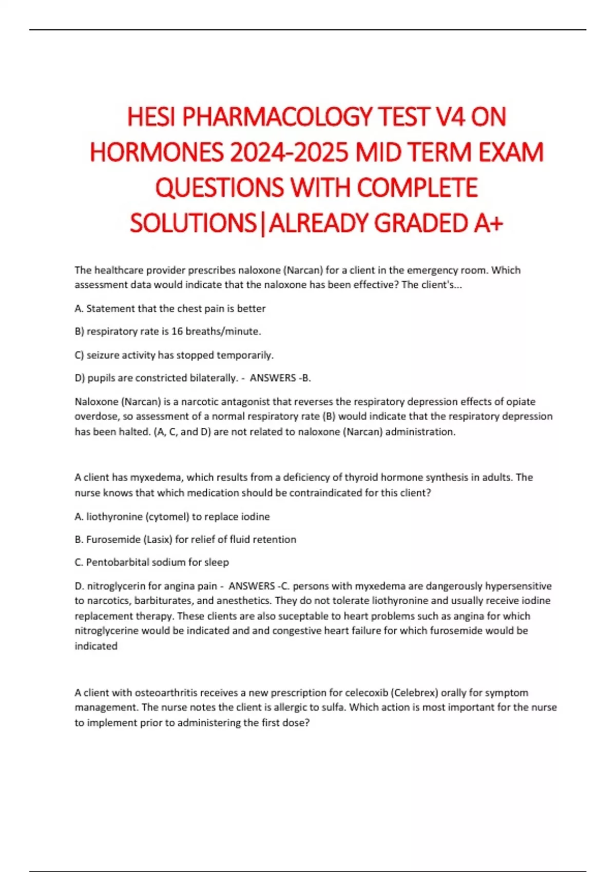 HESI PHARMACOLOGY TEST V4 ON HORMONES MID TERM EXAM QUESTIONS WITH COMPLETE SOLUTIONS|ALREADY GRADED A+ HESI PHARMACOLOGY TEST V4 ON HORMONES MID TERM EXAM QUESTIONS WITH COMPLETE SOLUTIONS|ALREADY GRADED A+ HESI PHARMACOLOGY TEST V4 ON HORMONES MID TERM EXAM QUESTIONS WITH COMPLETE SOLUTIONS|ALREADY GRADED A+ HESI PHARMACOLOGY TEST V4 ON HORMONES MID TERM EXAM QUESTIONS WITH COMPLETE SOLUTIONS|ALREADY GRADED A+ HESI PHARMACOLOGY TEST V4 ON HORMONES MID TERM EXAM QUESTIONS WITH COMPLETE SOLUTIONS|ALREADY GRADED A+ HESI PHARMACOLOGY TEST V4 ON HORMONES MID TERM EXAM QUESTIONS WITH COMPLETE SOLUTIONS|ALREADY GRADED A+ HESI PHARMACOLOGY TEST V4 ON HORMONES MID TERM EXAM QUESTIONS WITH COMPLETE SOLUTIONS|ALREADY GRADED A+ HESI PHARMACOLOGY TEST V4 ON HORMONES MID TERM EXAM QUESTIONS WITH COMPLETE SOLUTIONS|ALREADY GRADED A+