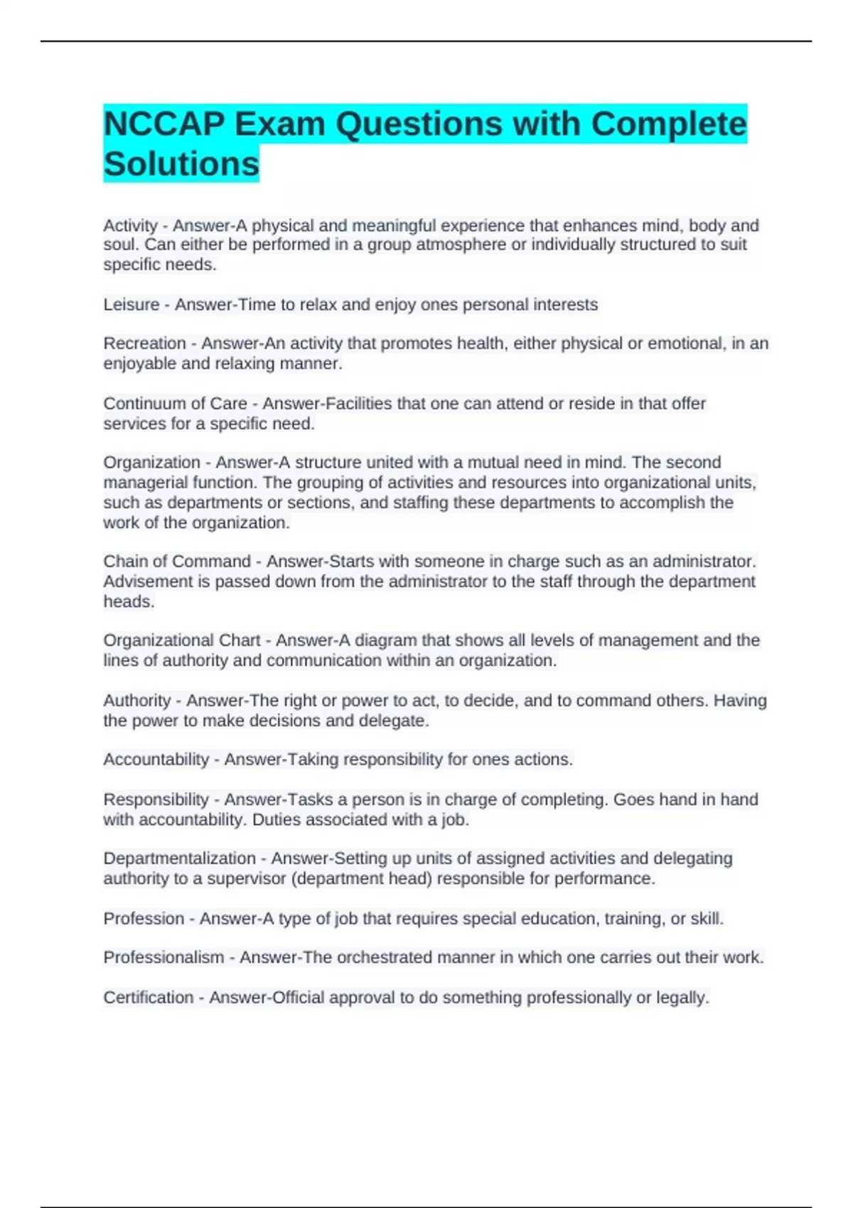 NCCAP Exam Questions with Complete
