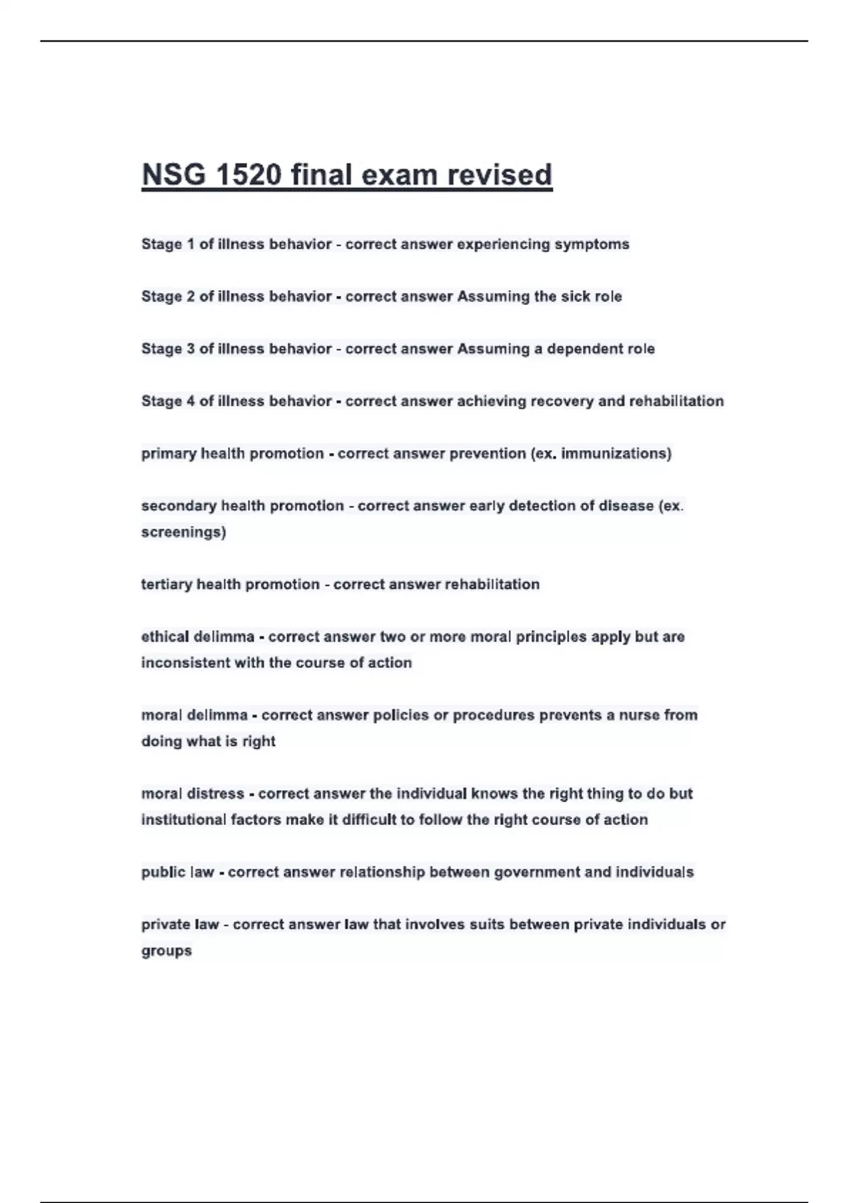 nsg 1520 final exam revisedpdf