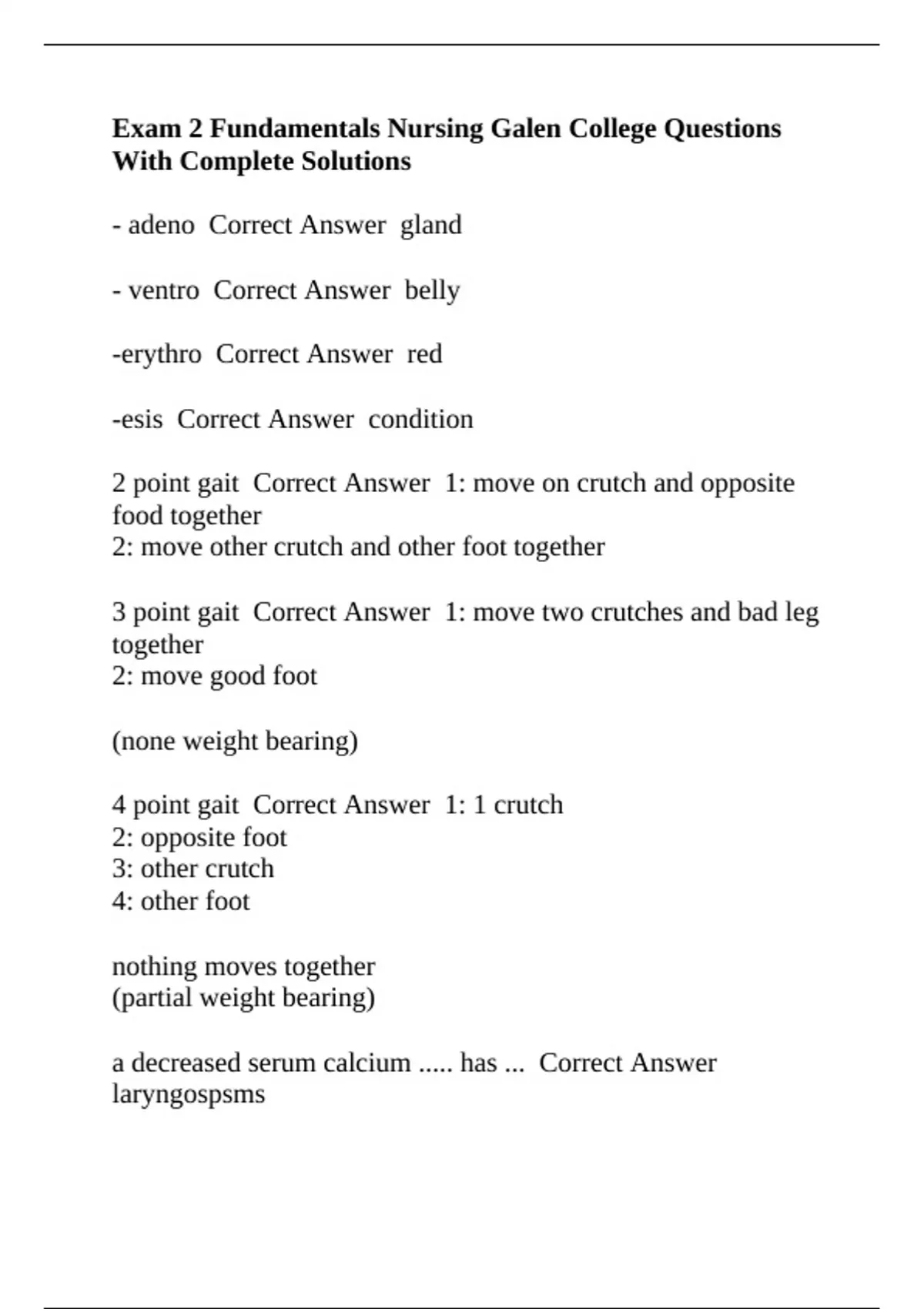 Exam 2 Fundamentals Nursing Galen College Questions With Complete Solutions
