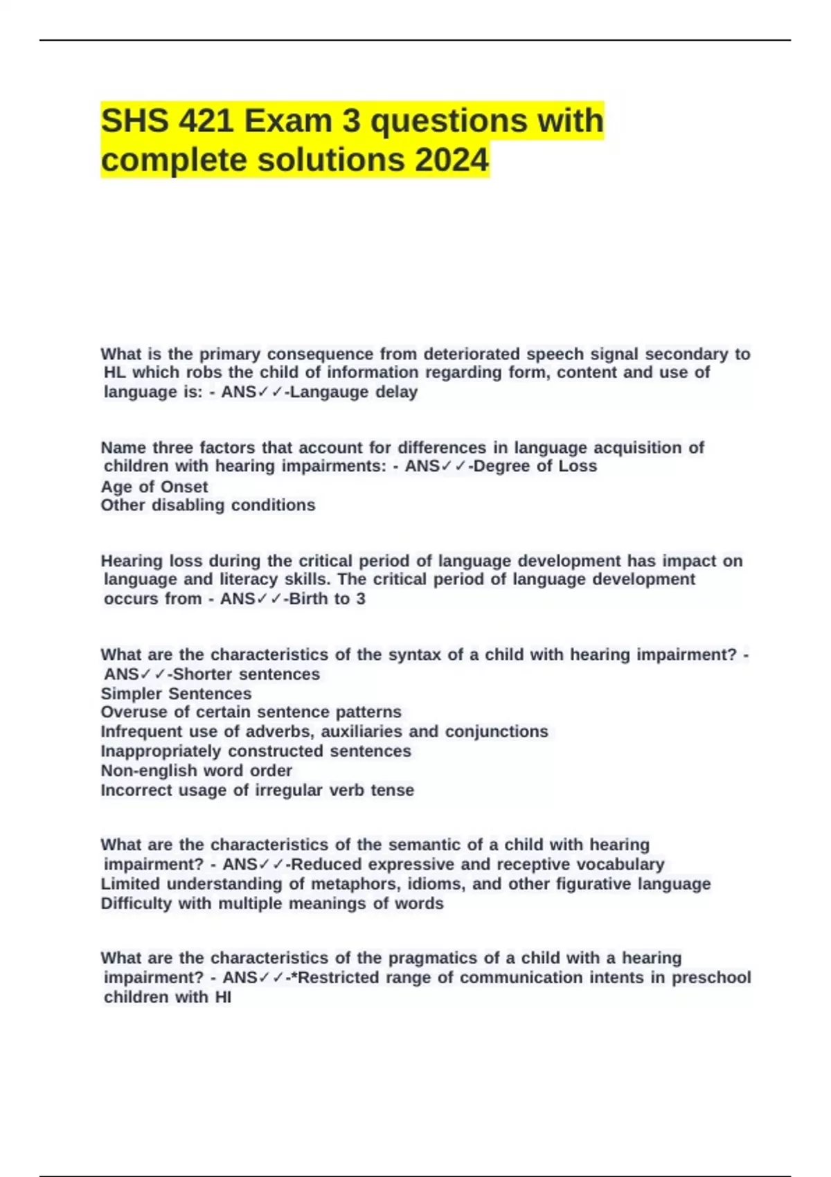 SHS 421 Exam 3 questions with complete solutions 2024.
