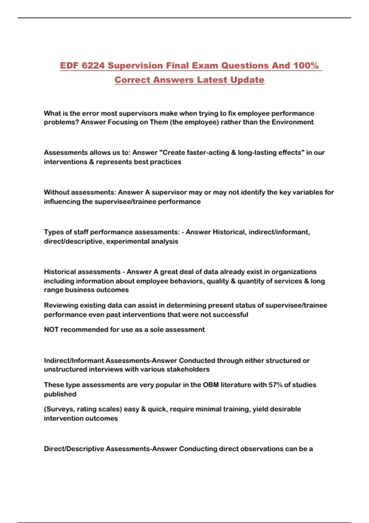 Types of staff performance assessments: - Answer Historical, indirect/informant,