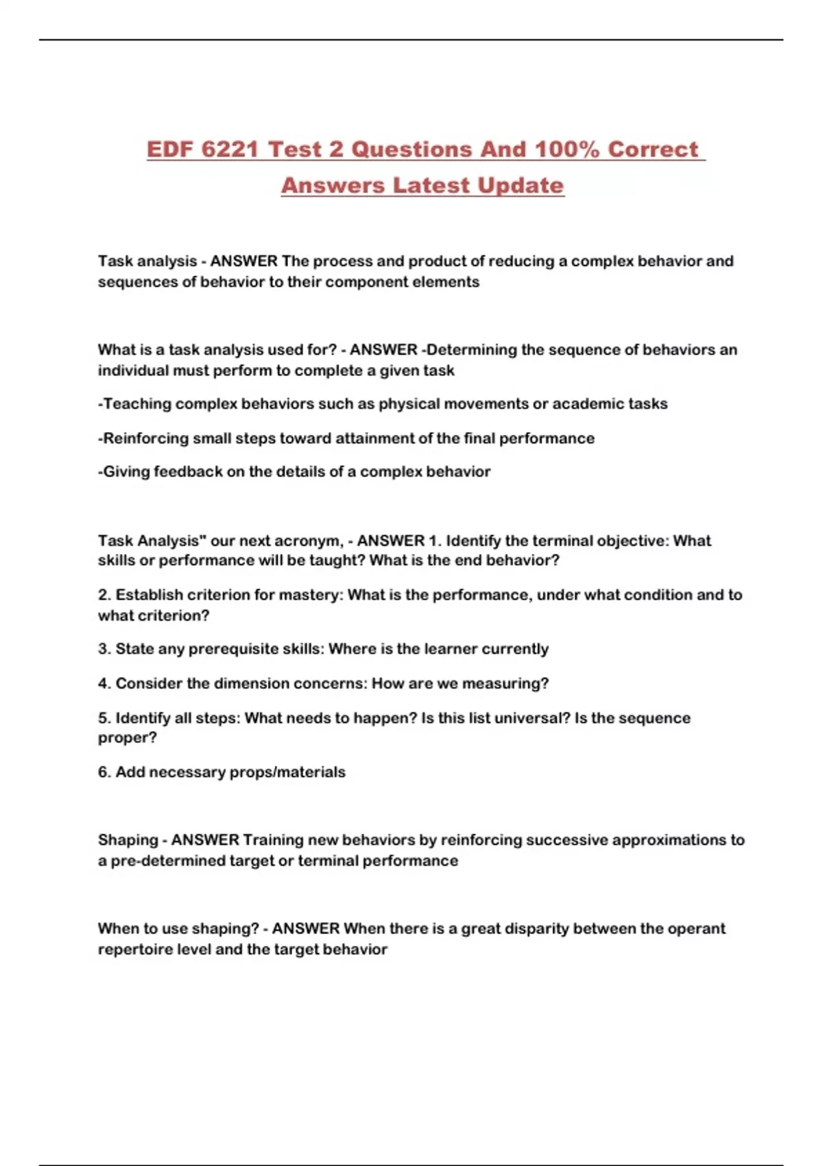 EDF 6221 Test 2 Questions And 100% Correct