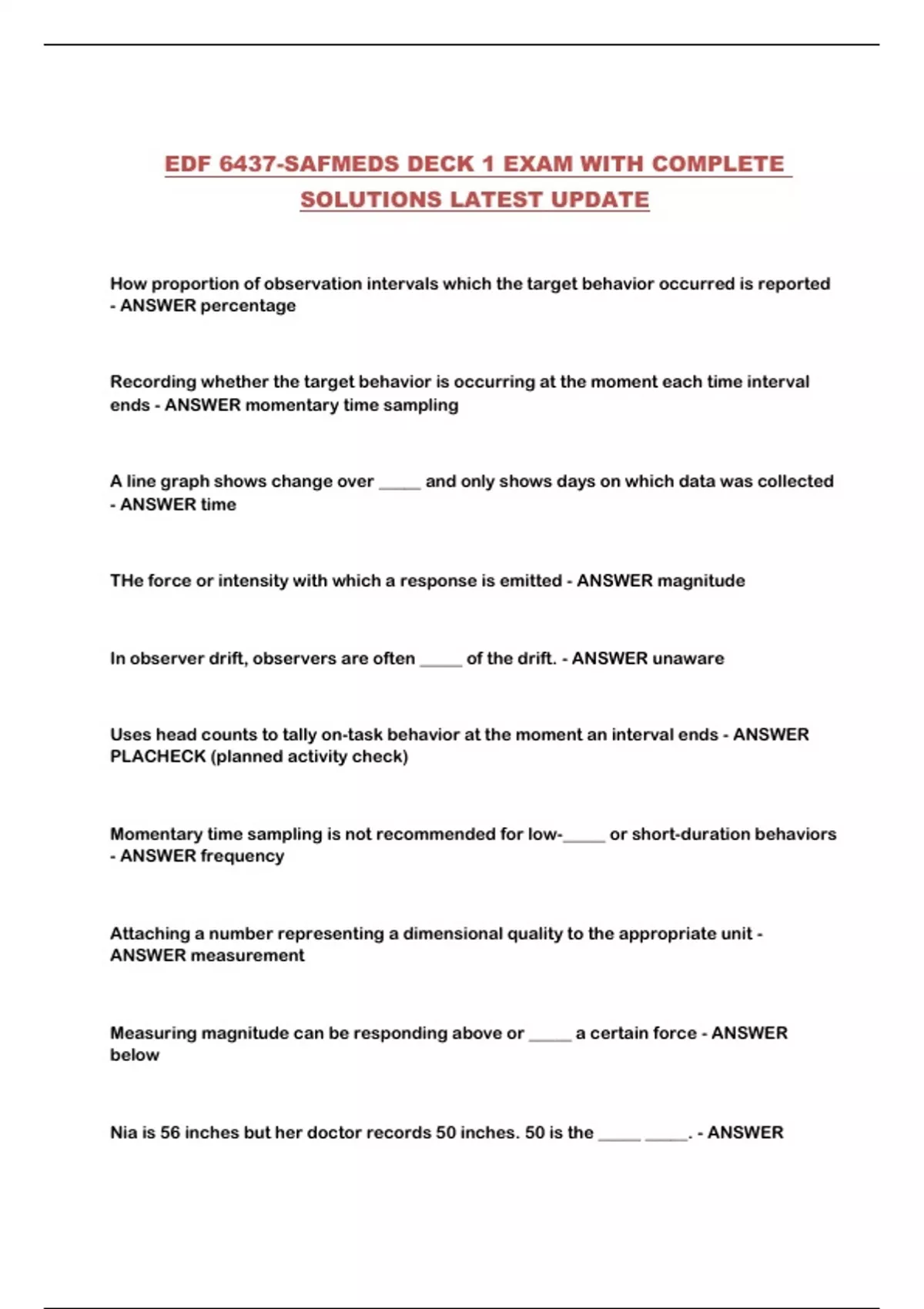 EDF 6437-SAFMEDS DECK 1 EXAM WITH COMPLETE