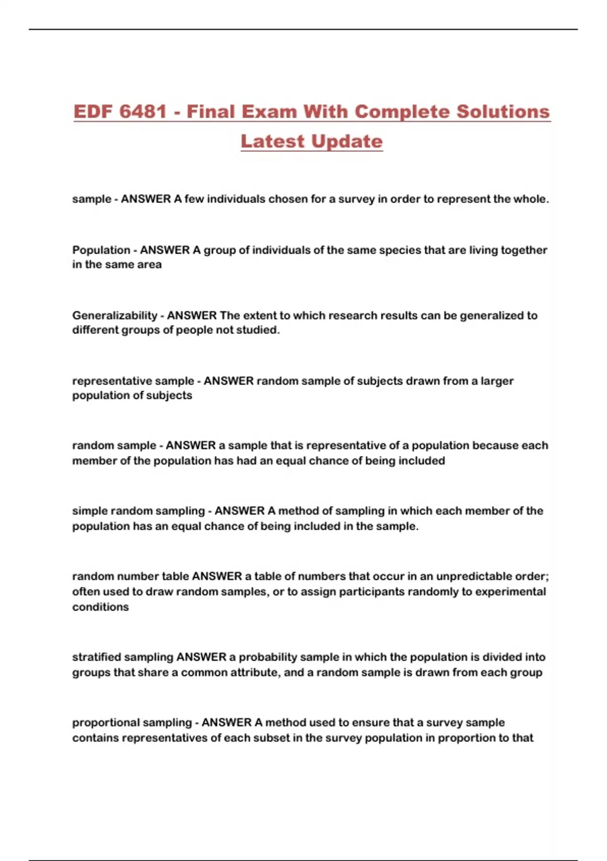 EDF 6481 - Final Exam With Complete Solutions