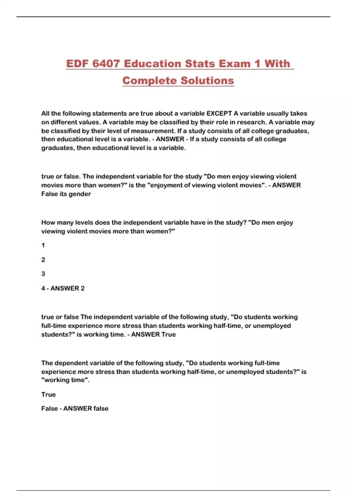 False - ANSWER true
