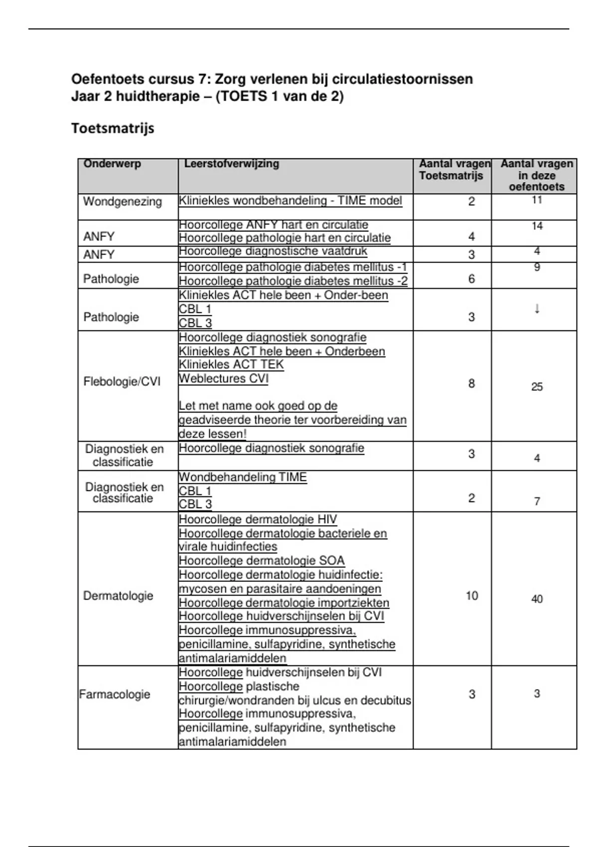 In deze toets is er extra aandacht besteed aan wondzorg/TIME, CIV/ACT/TEK omdat