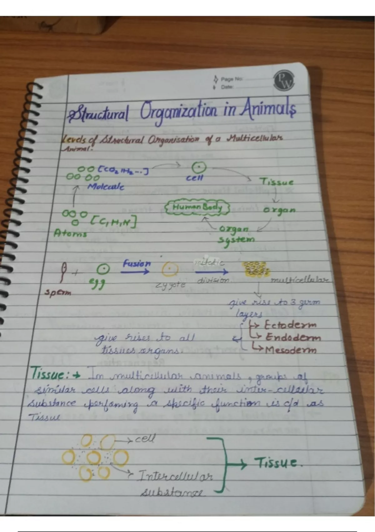 Class 11 biology ncert,chapter structural organization in animals. Handwritten class notes. It helps for clear your basics about tissue, cells, bone, cartilage etc. This notes is also useful for neet. Previous years many questions in this notes.