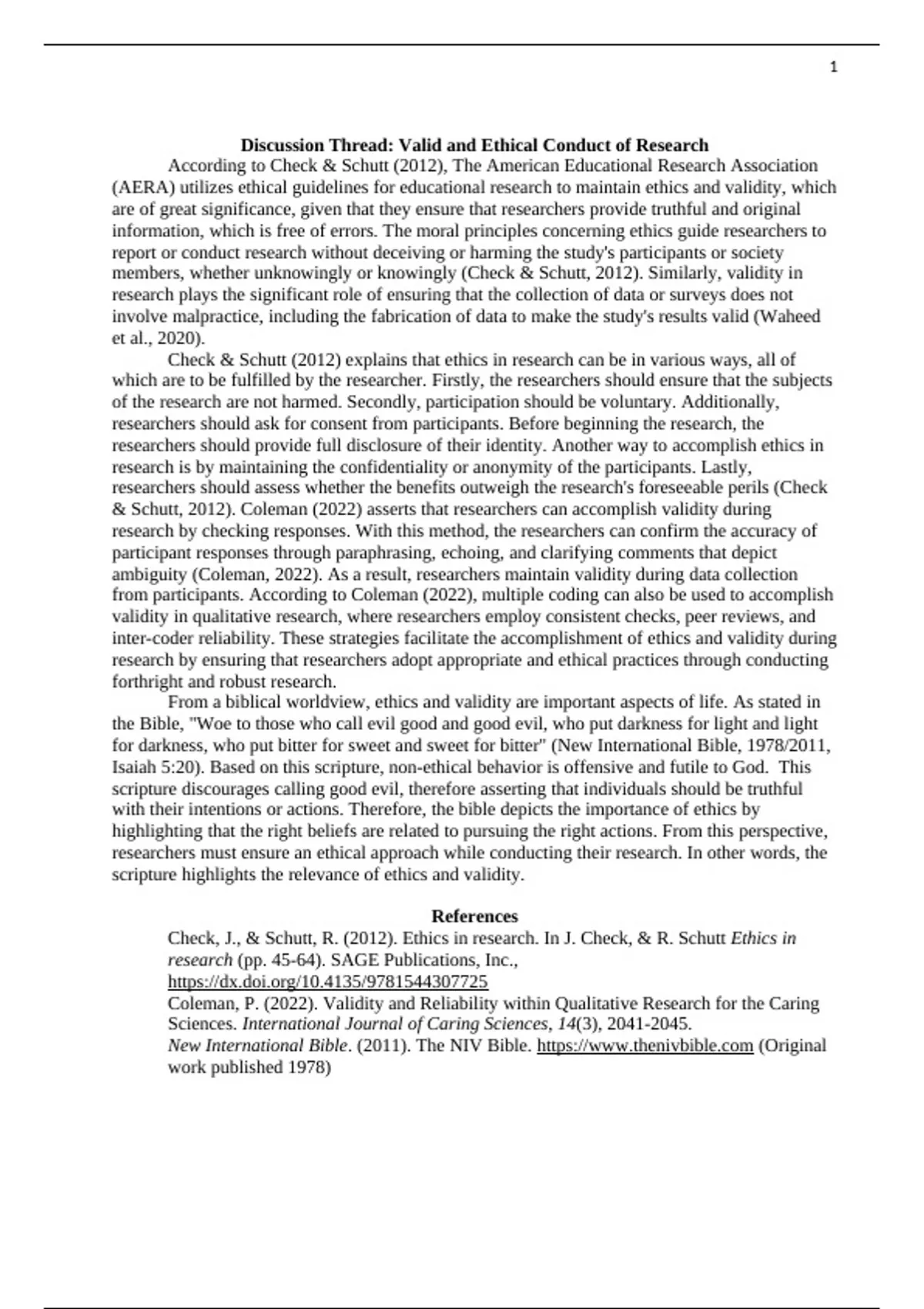 From a biblical worldview, ethics and validity are important aspects of life. As stated in