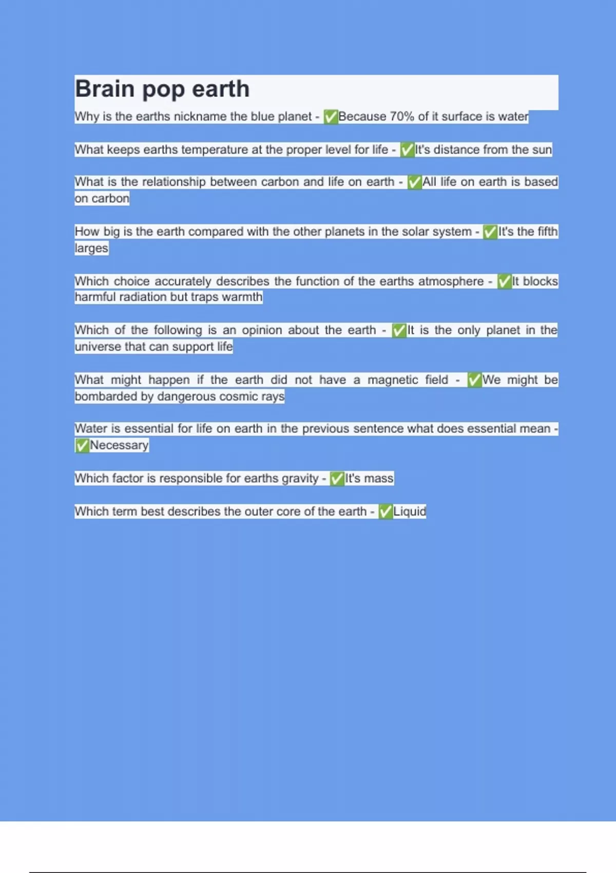Which of the following is an opinion about the earth - ✅It is the only planet in the