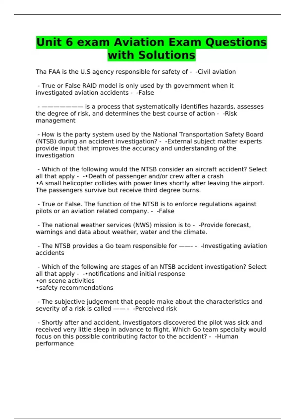 Unit 6 exam Aviation Exam Questions