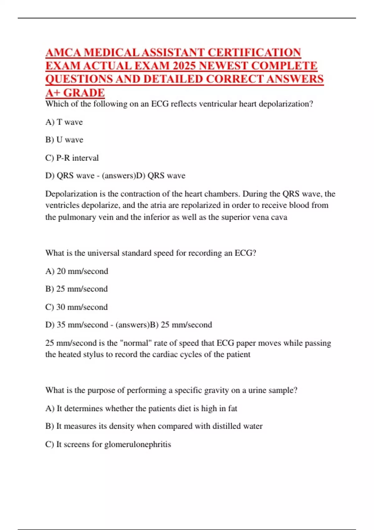 AMCA MEDICAL ASSISTANT CERTIFICATION EXAM ACTUAL EXAM 2025 NEWEST COMPLETE QUESTIONS AND DETAILED CORRECT ANSWERS A+ GRADE