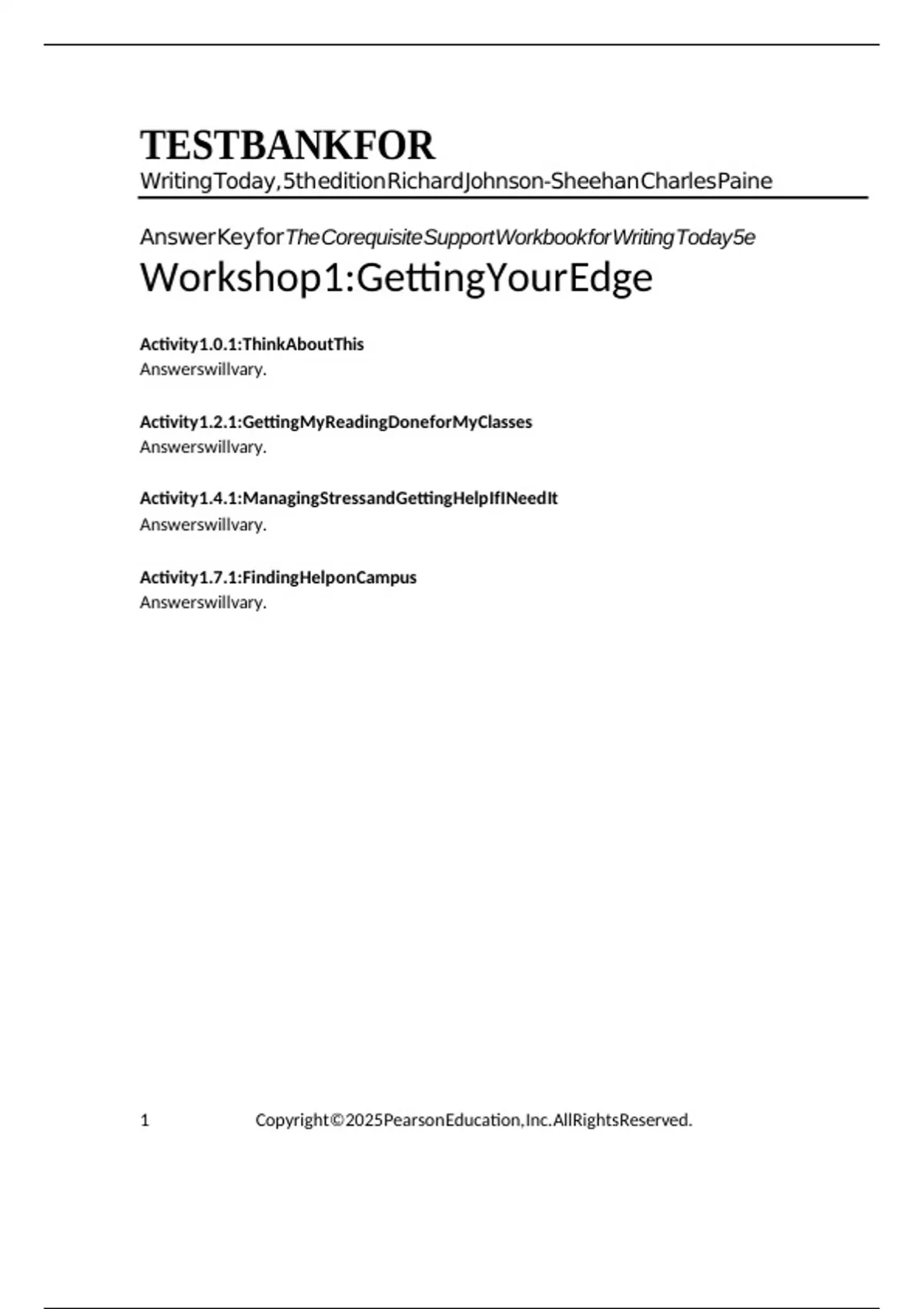 AnswerKeyforTheCorequisiteSupportWorkbookforWritingToday5e