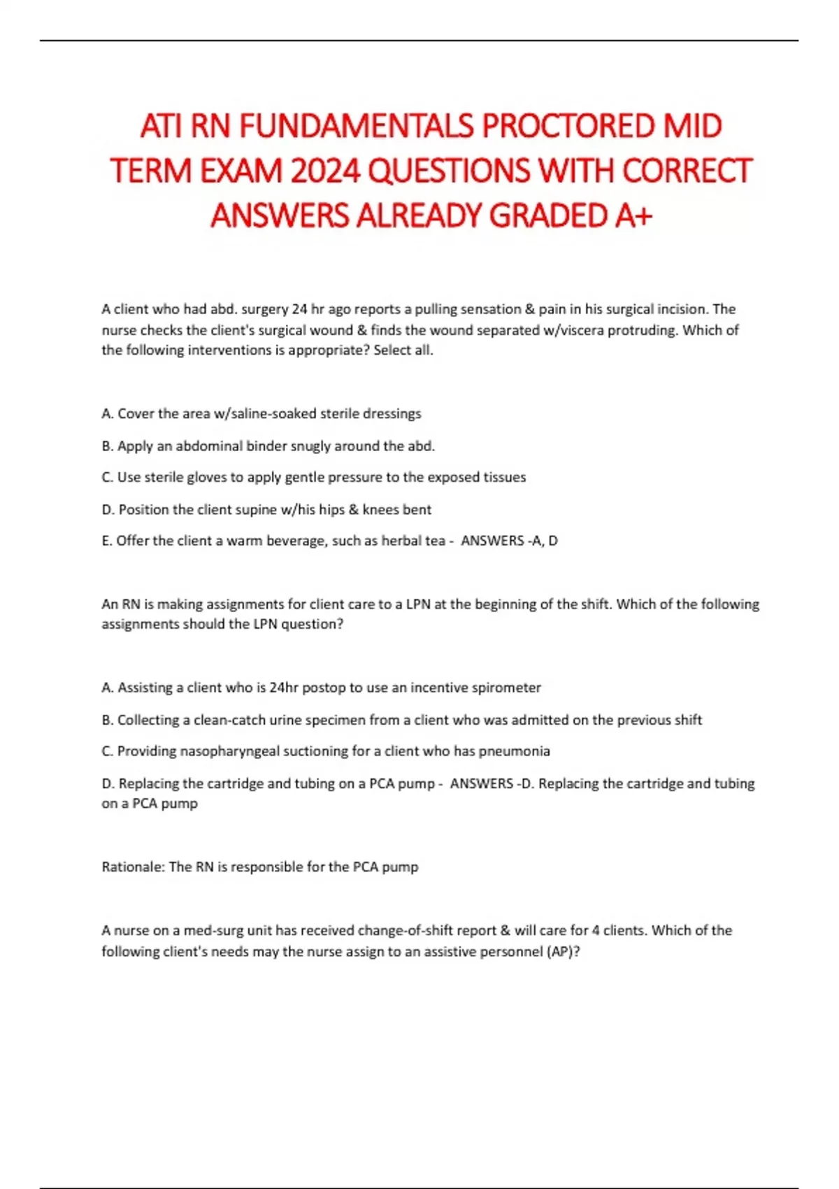 ATI RN FUNDAMENTALS PROCTORED MID TERM EXAM 2024 QUESTIONS WITH CORRECT ANSWERS ALREADY GRADED A+ATI RN FUNDAMENTALS PROCTORED MID TERM EXAM 2024 QUESTIONS WITH CORRECT ANSWERS ALREADY GRADED A+ATI RN FUNDAMENTALS PROCTORED MID TERM EXAM 2024 QUESTIONS WITH CORRECT ANSWERS ALREADY GRADED A+ATI RN FUNDAMENTALS PROCTORED MID TERM EXAM 2024 QUESTIONS WITH CORRECT ANSWERS ALREADY GRADED A+ATI RN FUNDAMENTALS PROCTORED MID TERM EXAM 2024 QUESTIONS WITH CORRECT ANSWERS ALREADY GRADED A+VVVATI RN FUNDAMENTALS PROCTORED MID TERM EXAM 2024 QUESTIONS WITH CORRECT ANSWERS ALREADY GRADED A+ATI RN FUNDAMENTALS PROCTORED MID TERM EXAM 2024 QUESTIONS WITH CORRECT ANSWERS ALREADY GRADED A+