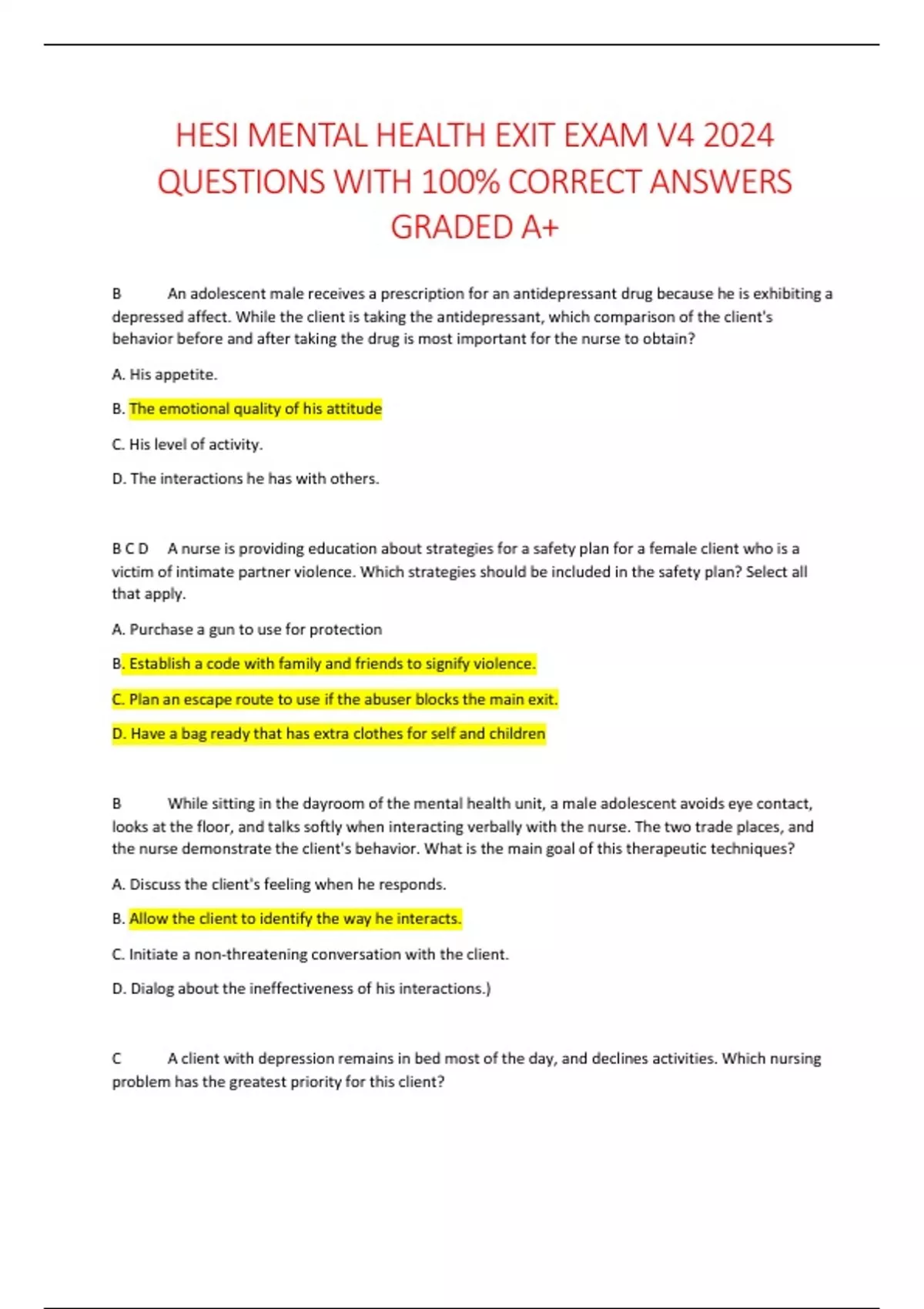 HESI MENTAL HEALTH EXIT EXAM V4 2024 QUESTIONS WITH 100% CORRECT ANSWERS GRADED A+ VHESI MENTAL HEALTH EXIT EXAM V4 2024 QUESTIONS WITH 100% CORRECT ANSWERS GRADED A+ HESI MENTAL HEALTH EXIT EXAM V4 2024 QUESTIONS WITH 100% CORRECT ANSWERS GRADED A+ HESI MENTAL HEALTH EXIT EXAM V4 2024 QUESTIONS WITH 100% CORRECT ANSWERS GRADED A+ HESI MENTAL HEALTH EXIT EXAM V4 2024 QUESTIONS WITH 100% CORRECT ANSWERS GRADED A+ HESI MENTAL HEALTH EXIT EXAM V4 2024 QUESTIONS WITH 100% CORRECT ANSWERS GRADED A+