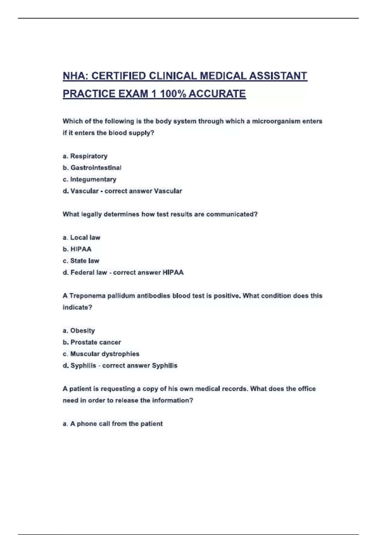 NHA CERTIFIED CLINICAL MEDICAL ASSISTANT PRACTICE EXAM 1 100- ACCURATE.pdf