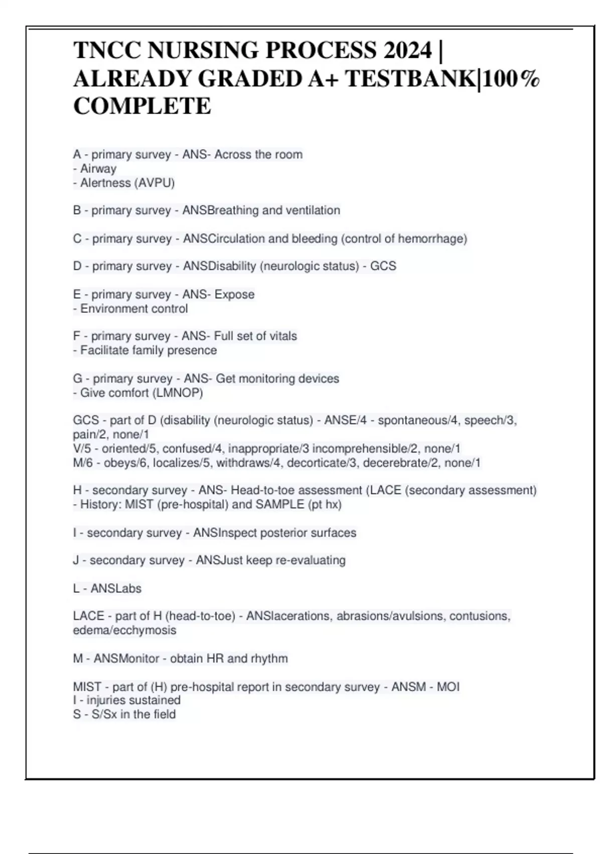 TNCC FINAL EXAM LATEST VERSIONS CONTAINS 150 QUESTIONS AND CORRECT