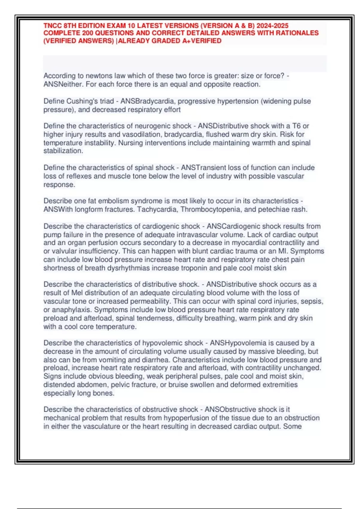 , TNCC 8TH EDITION EXAM 10 LATEST VERSIONS (VERSION A & B) 2024-2025
