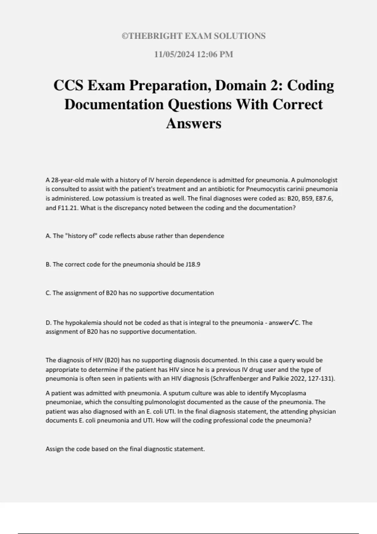D. The hypokalemia should not be coded as that is integral to the pneumonia - answer✔C. The