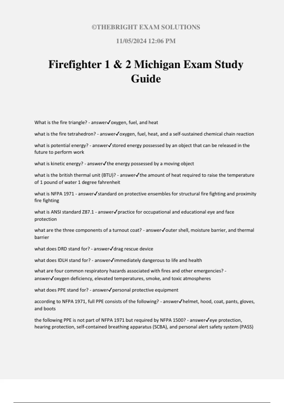 Firefighter 1 & 2 Michigan Exam Study