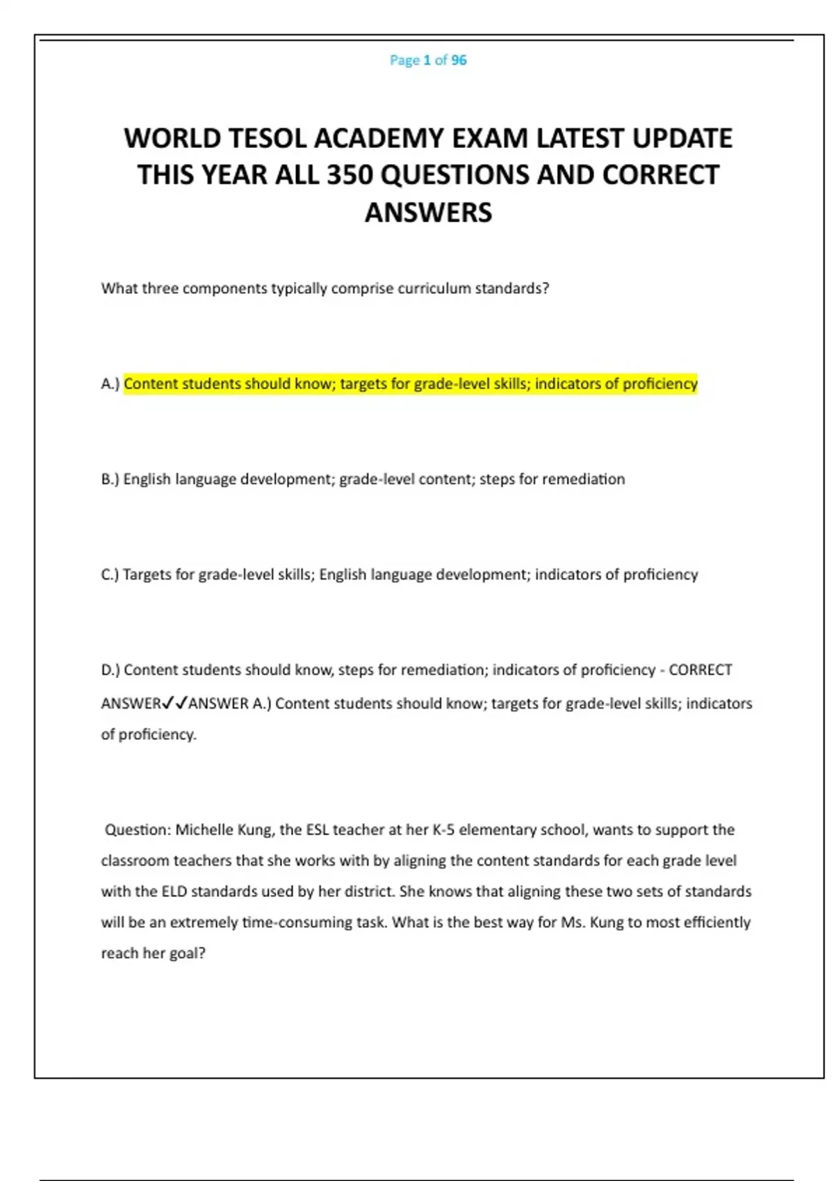WORLD TESOL ACADEMY EXAM LATEST UPDATE THIS YEAR ALL 350 QUESTIONS AND CORRECT ANSWERS