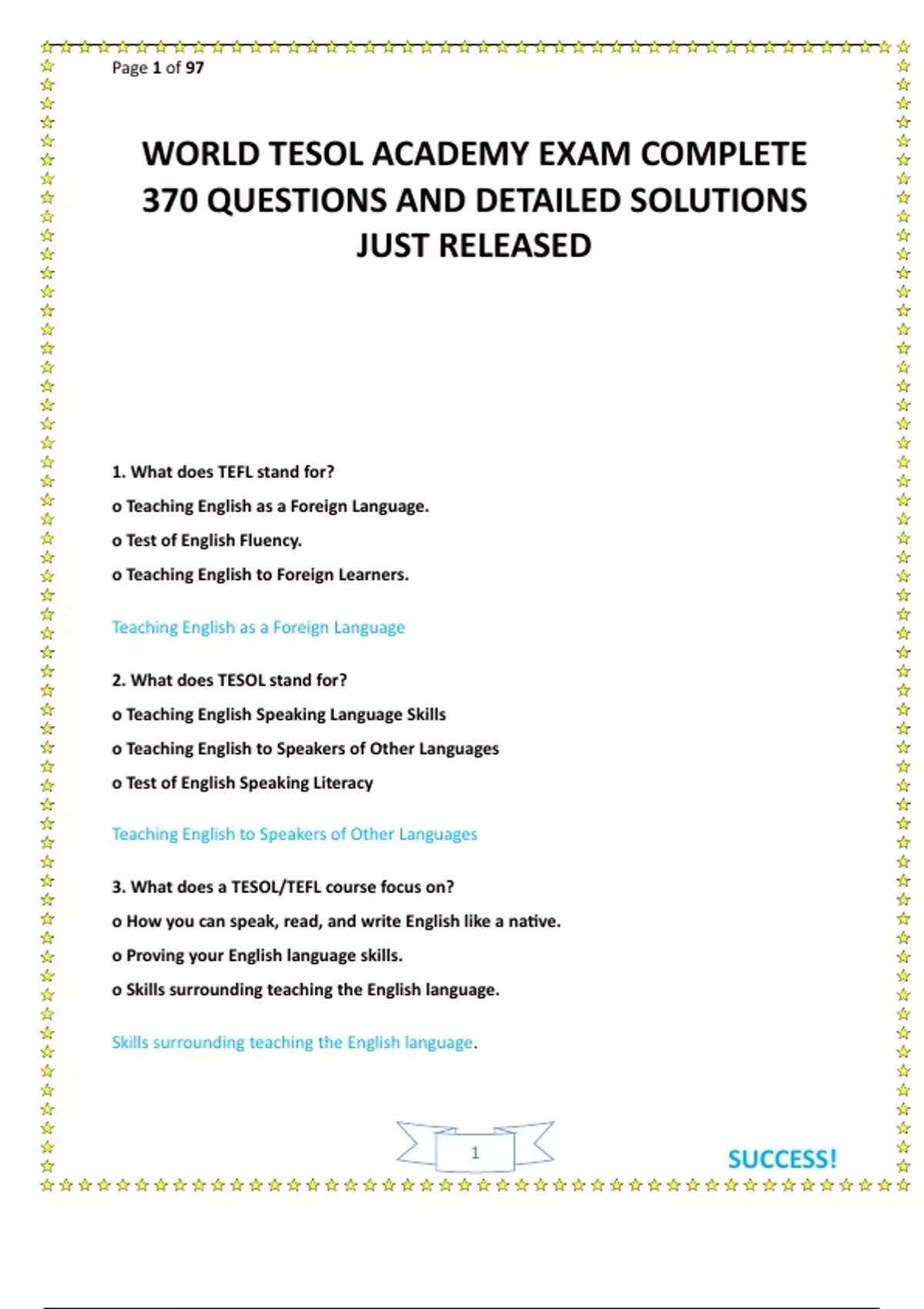 WORLD TESOL ACADEMY EXAM COMPLETE