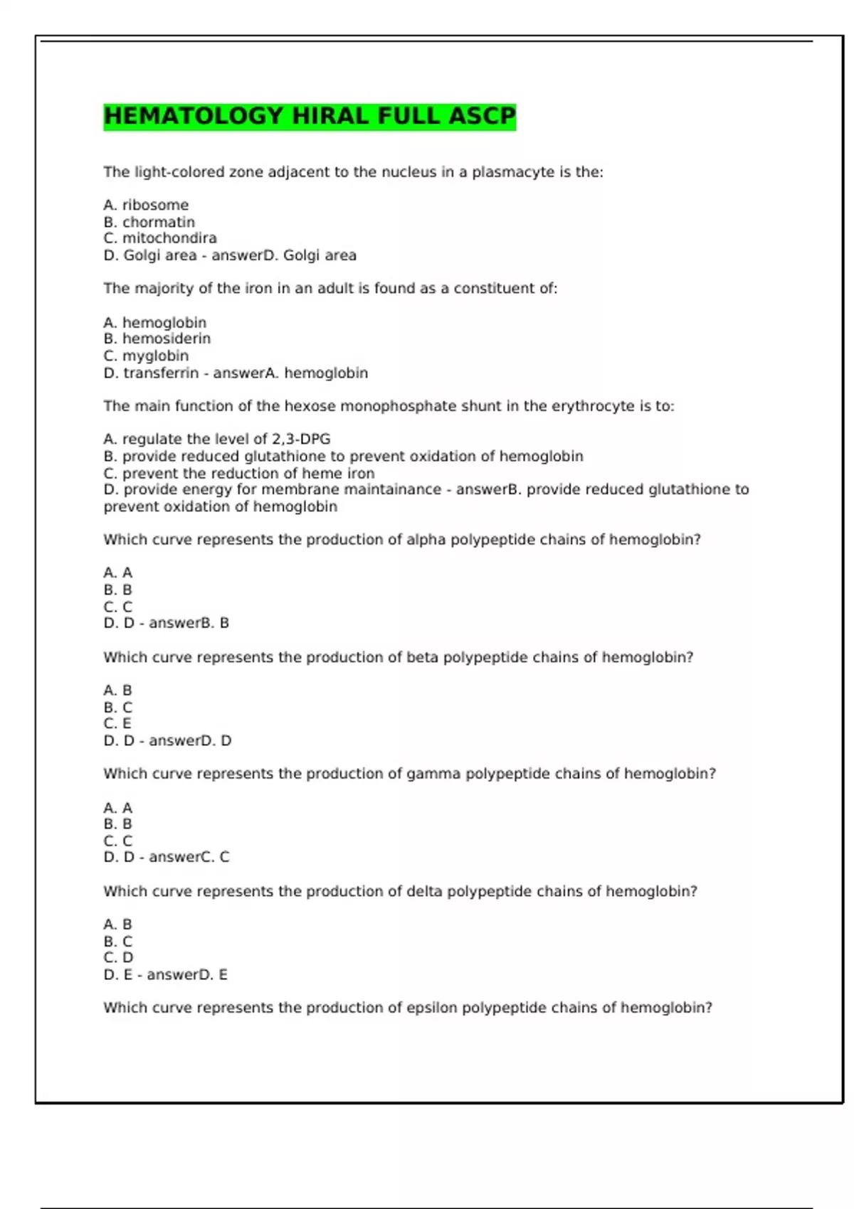 D. transferrin - answerA. hemoglobin