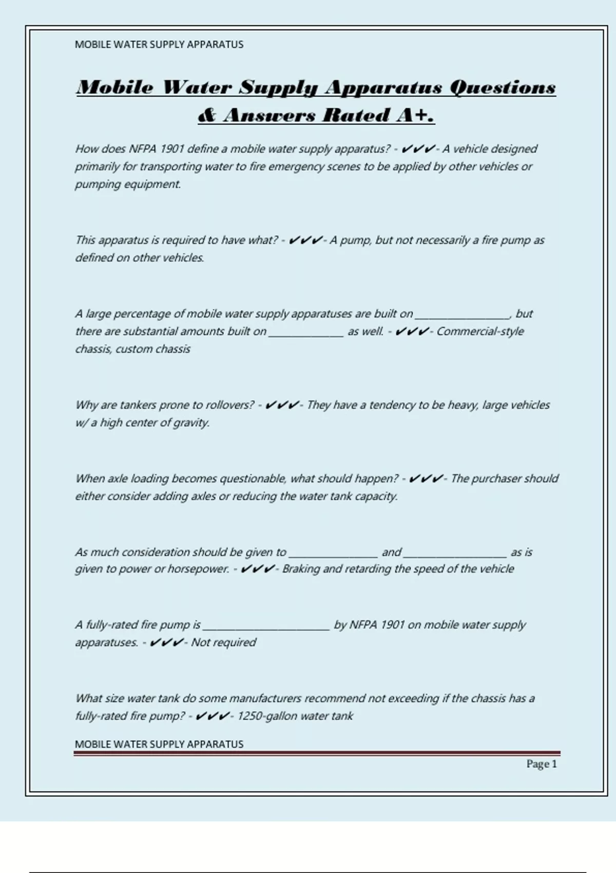 Mobile Water Supply Apparatus Questions & Answers Rated A+.
