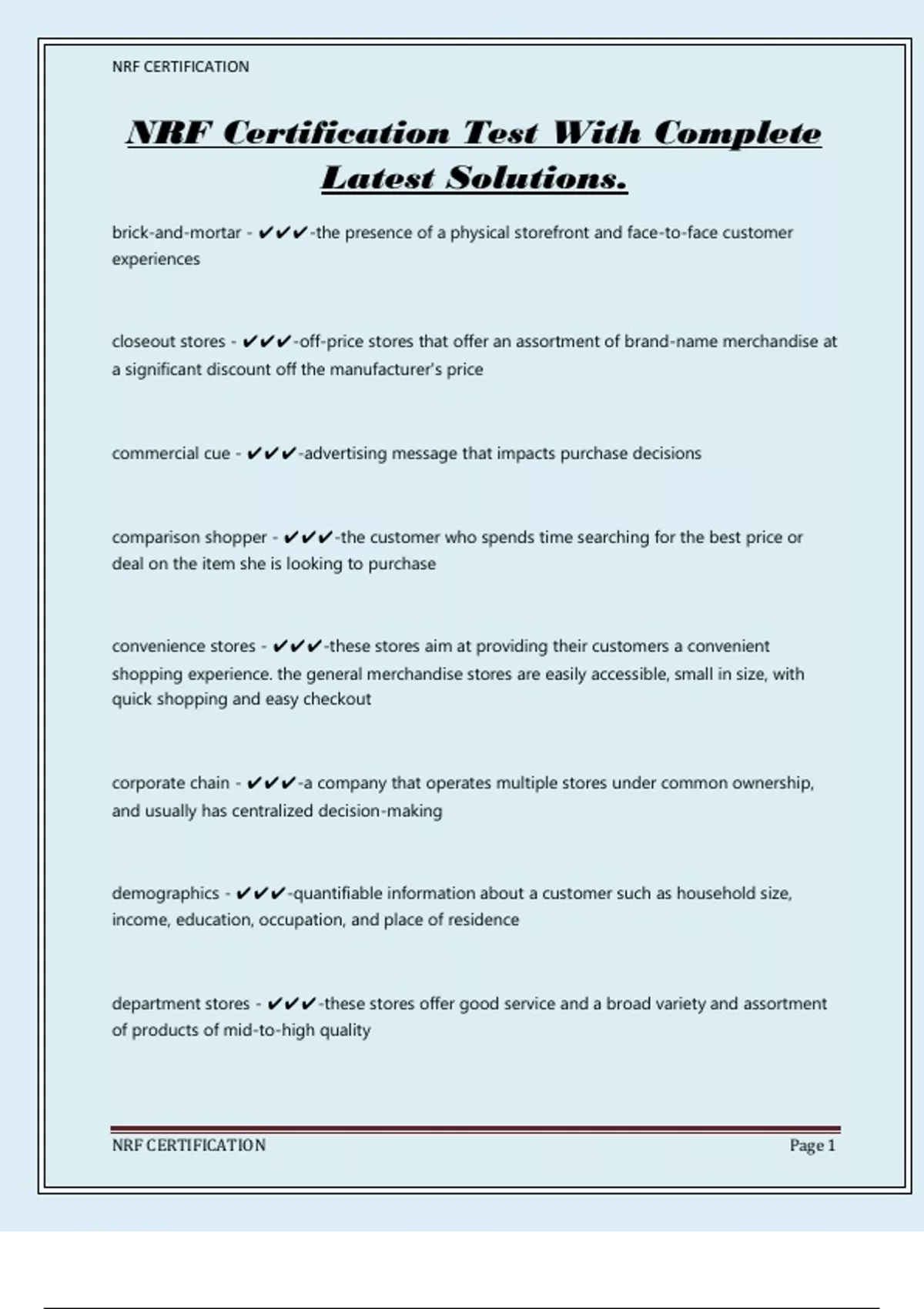 NRF CERTIFICATION Page 1