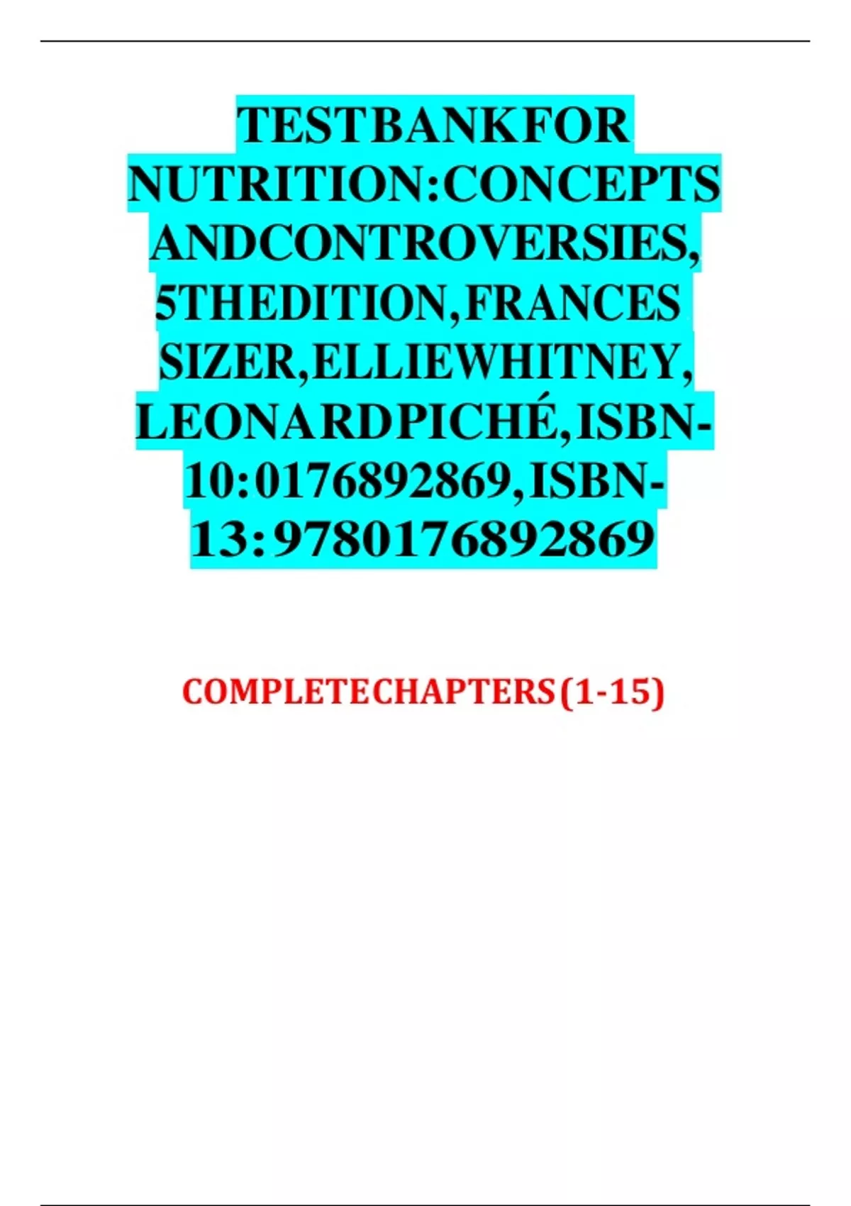 Test Bank for Nutrition: Concepts and Controversies, 16th Edition, Frances Sizer, Ellie Whitney, Leonard Piché ||Complete A+ Guide