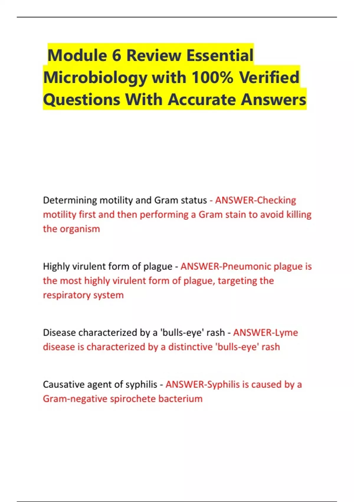 Module 6 Review Essential Microbiology with 100% Verified Questions With Accurate Answers